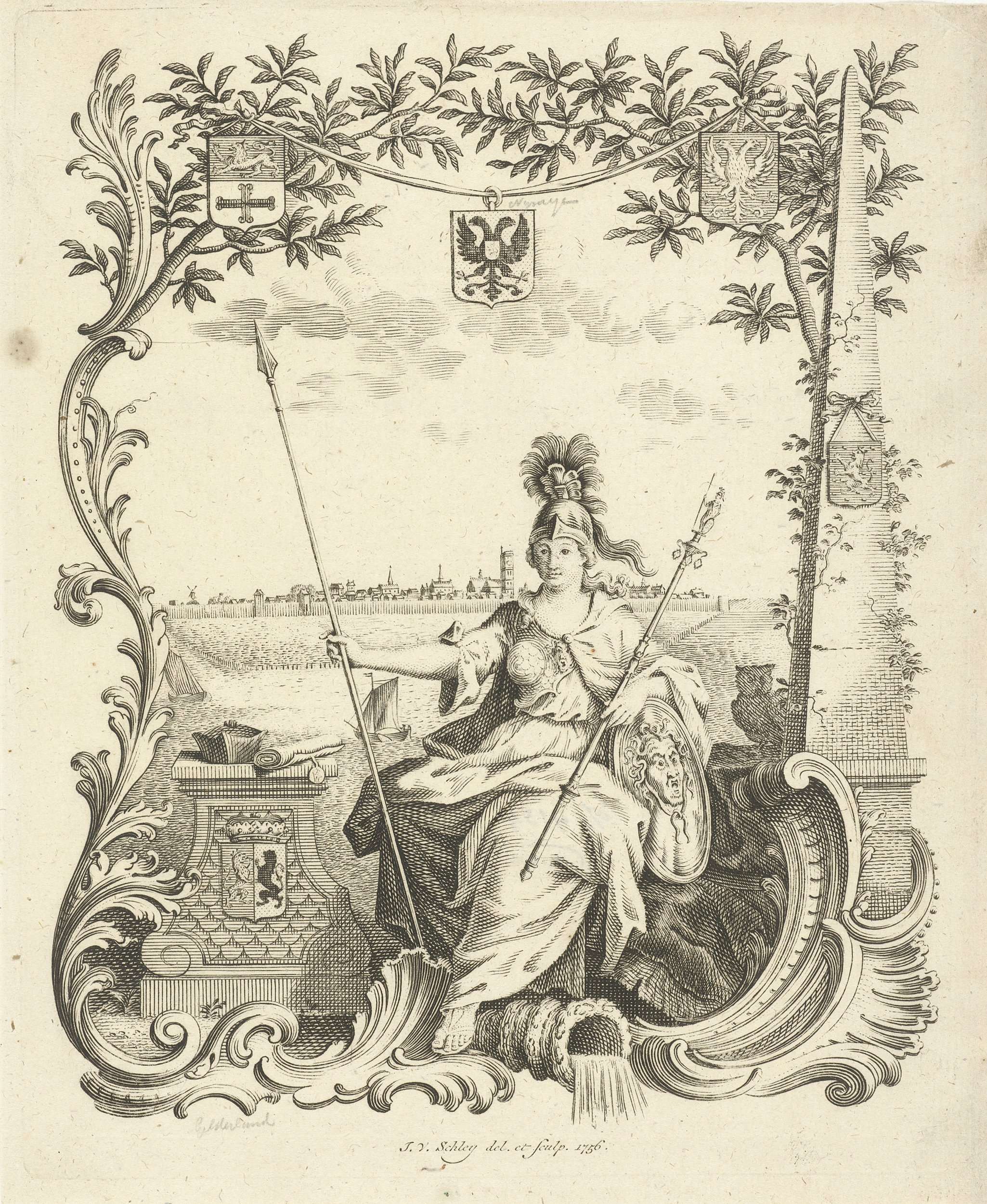 Minerva met pedelstaf voor universiteitsstad Harderw...