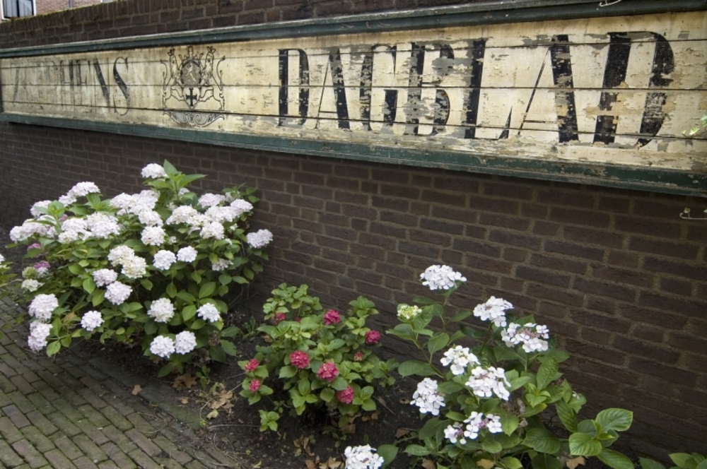 Reclamebord met tekst 'Zutphens Dagblad' op het pand...