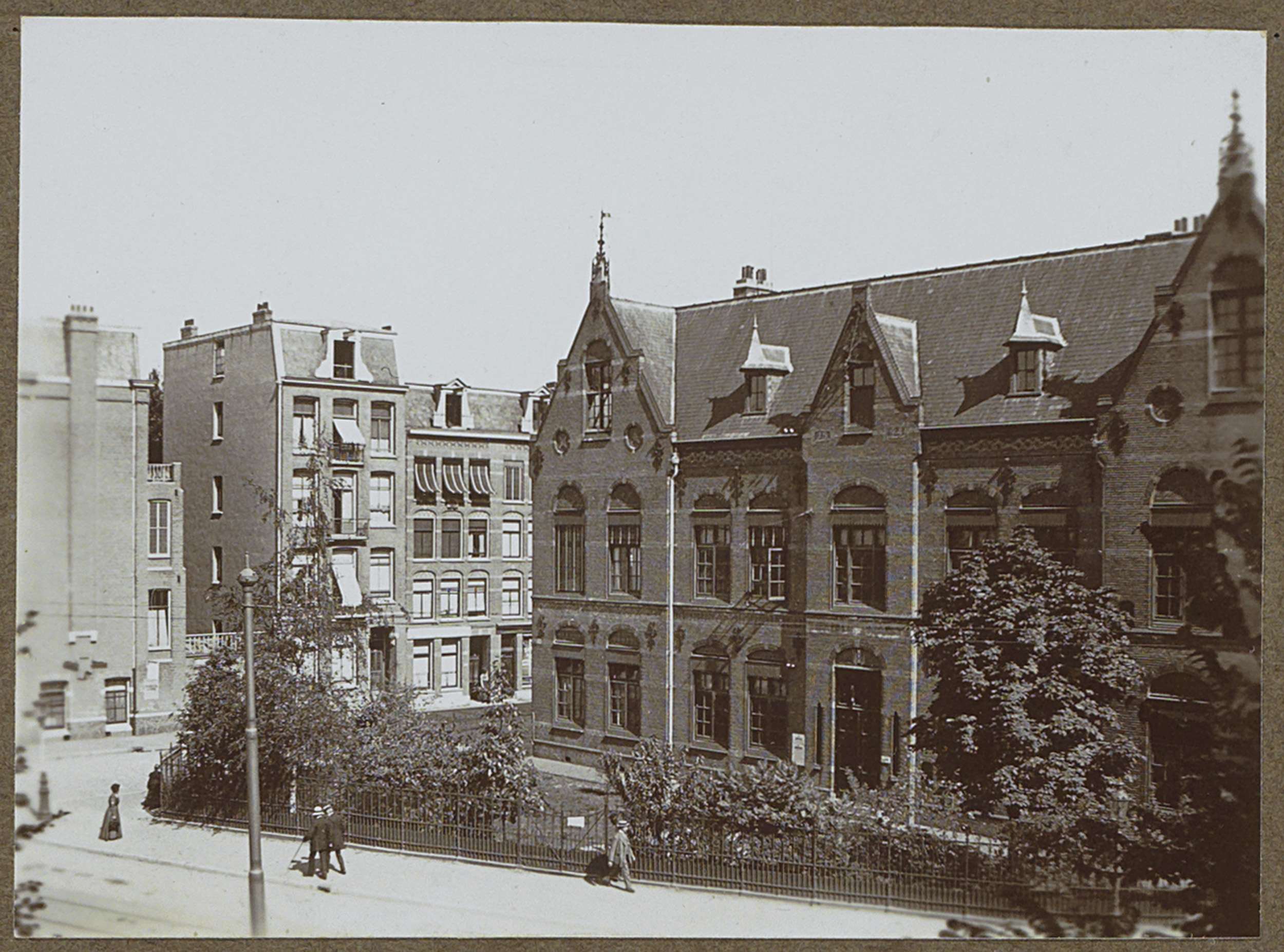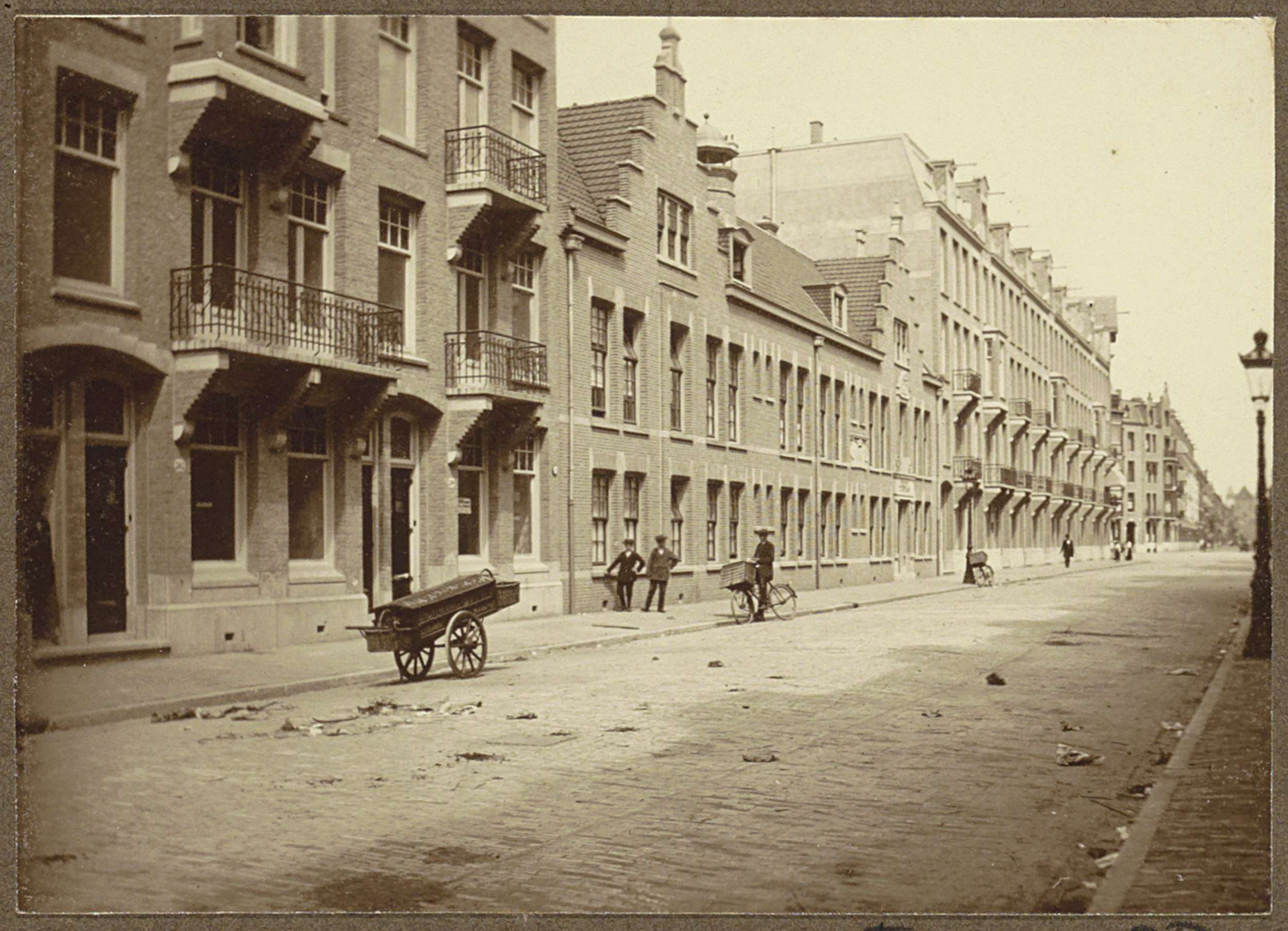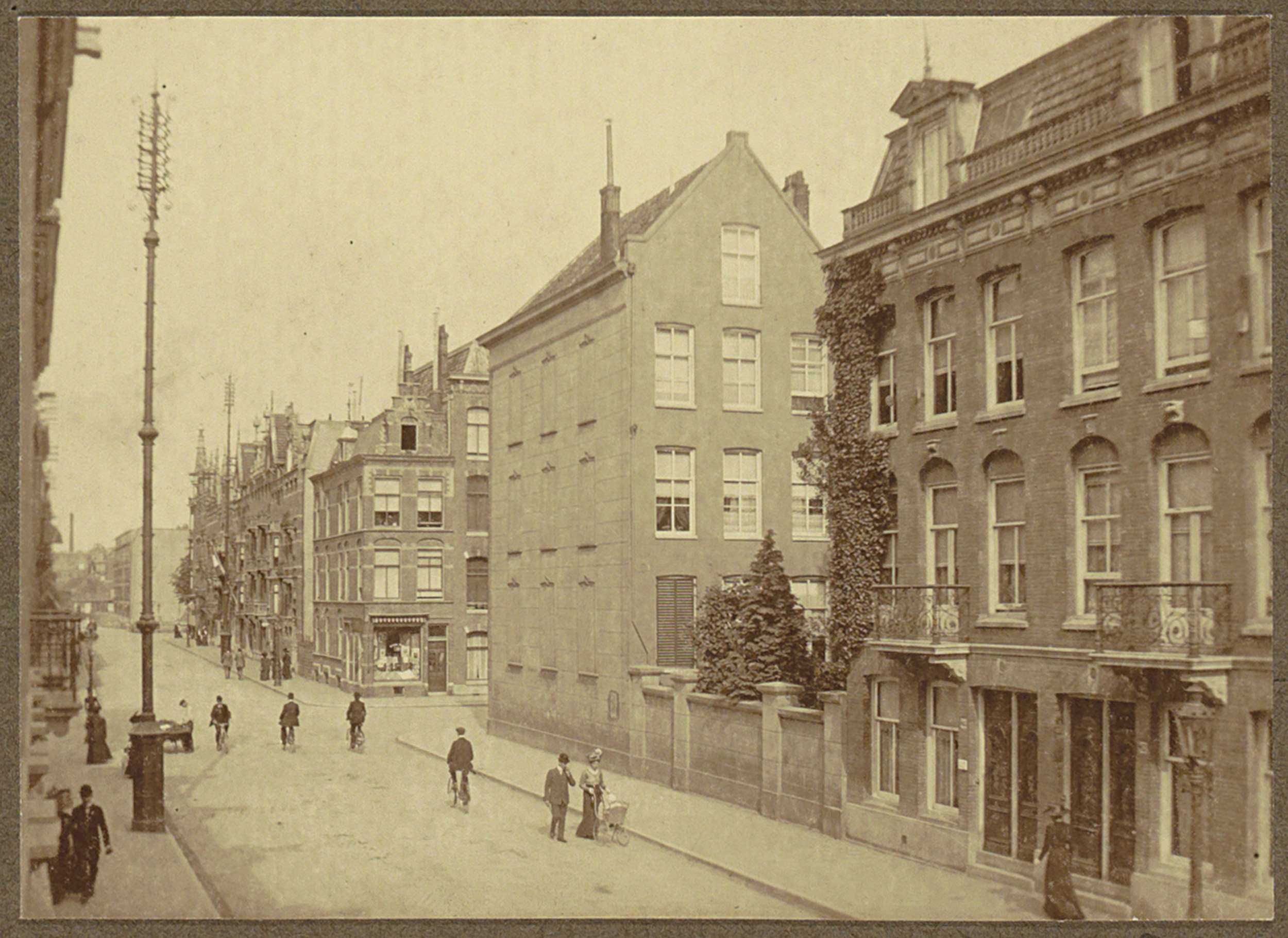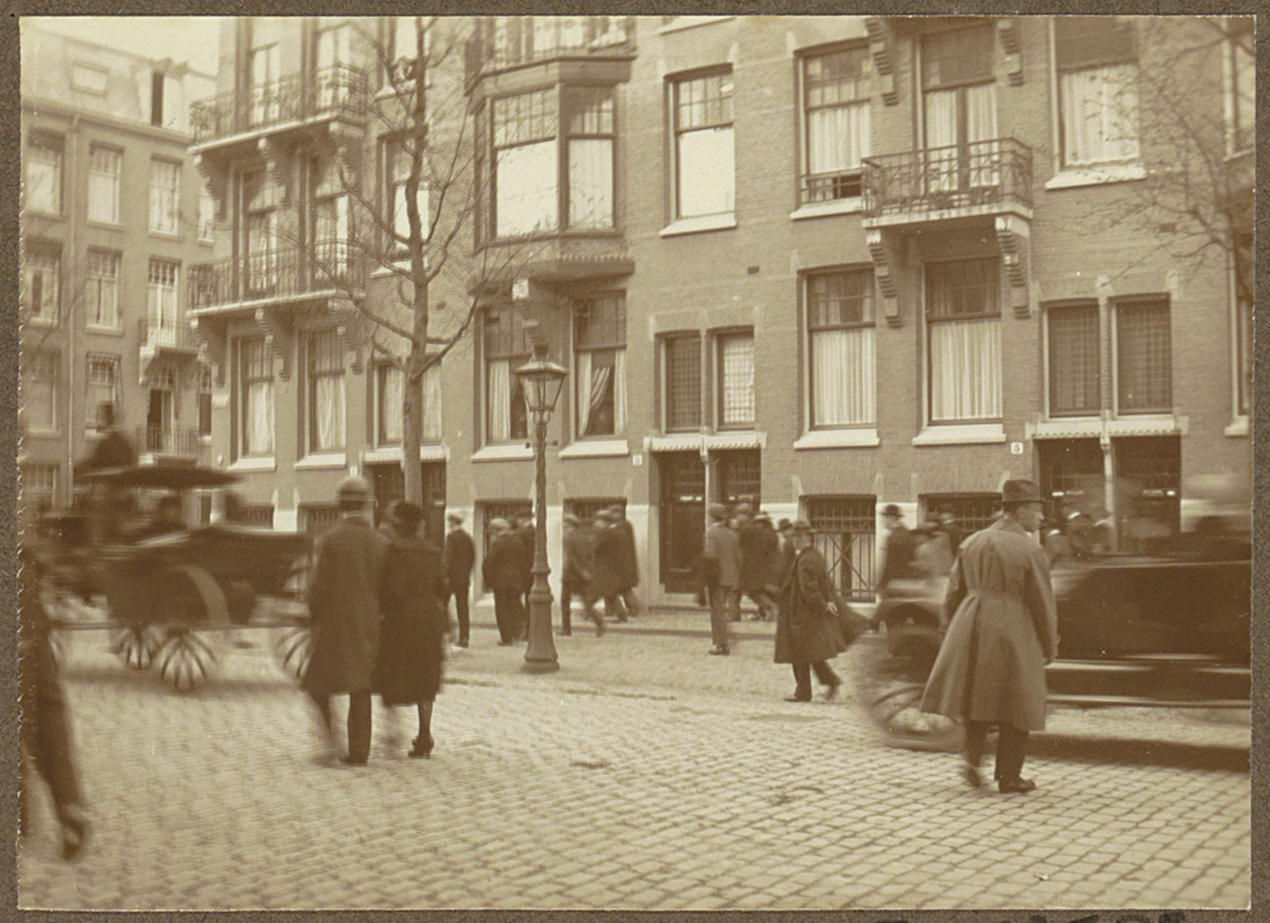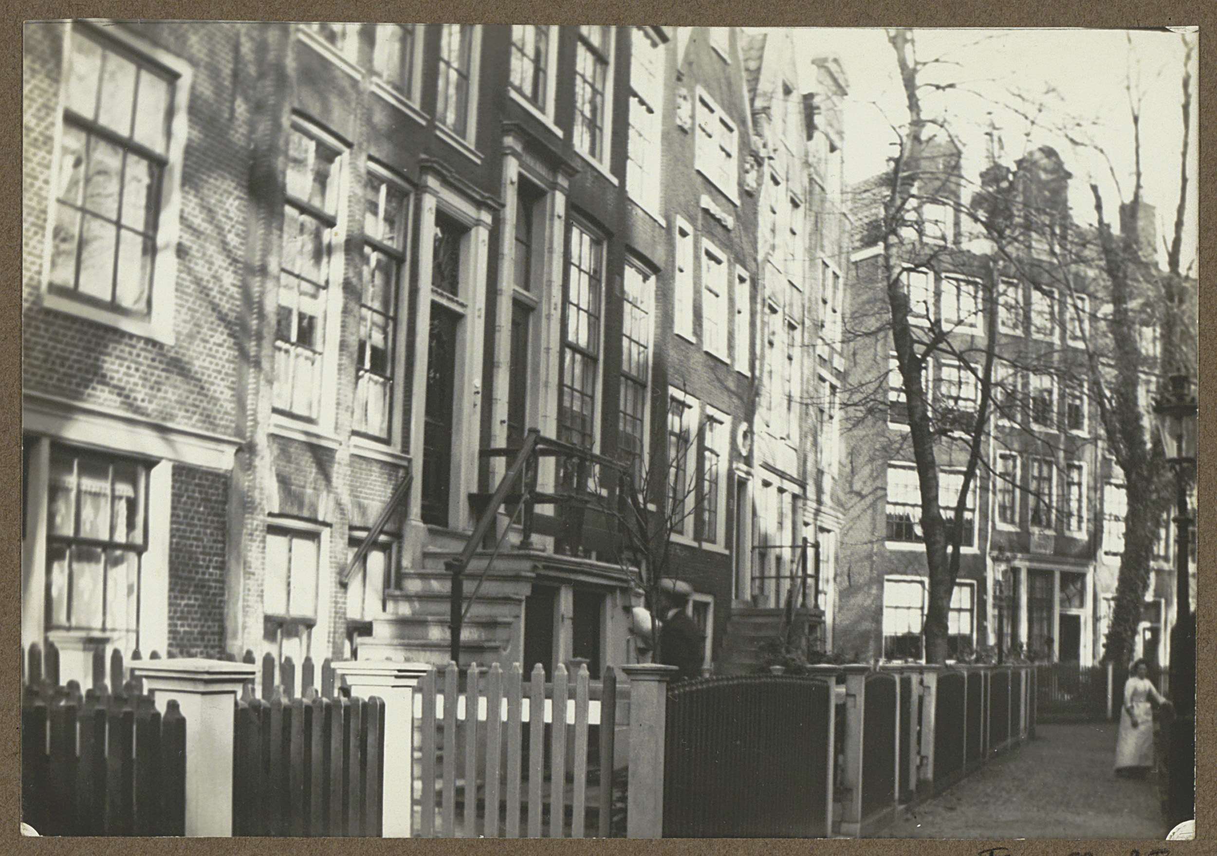 Huizenrij met voorbijgangers aan de Valeriusstraat t...