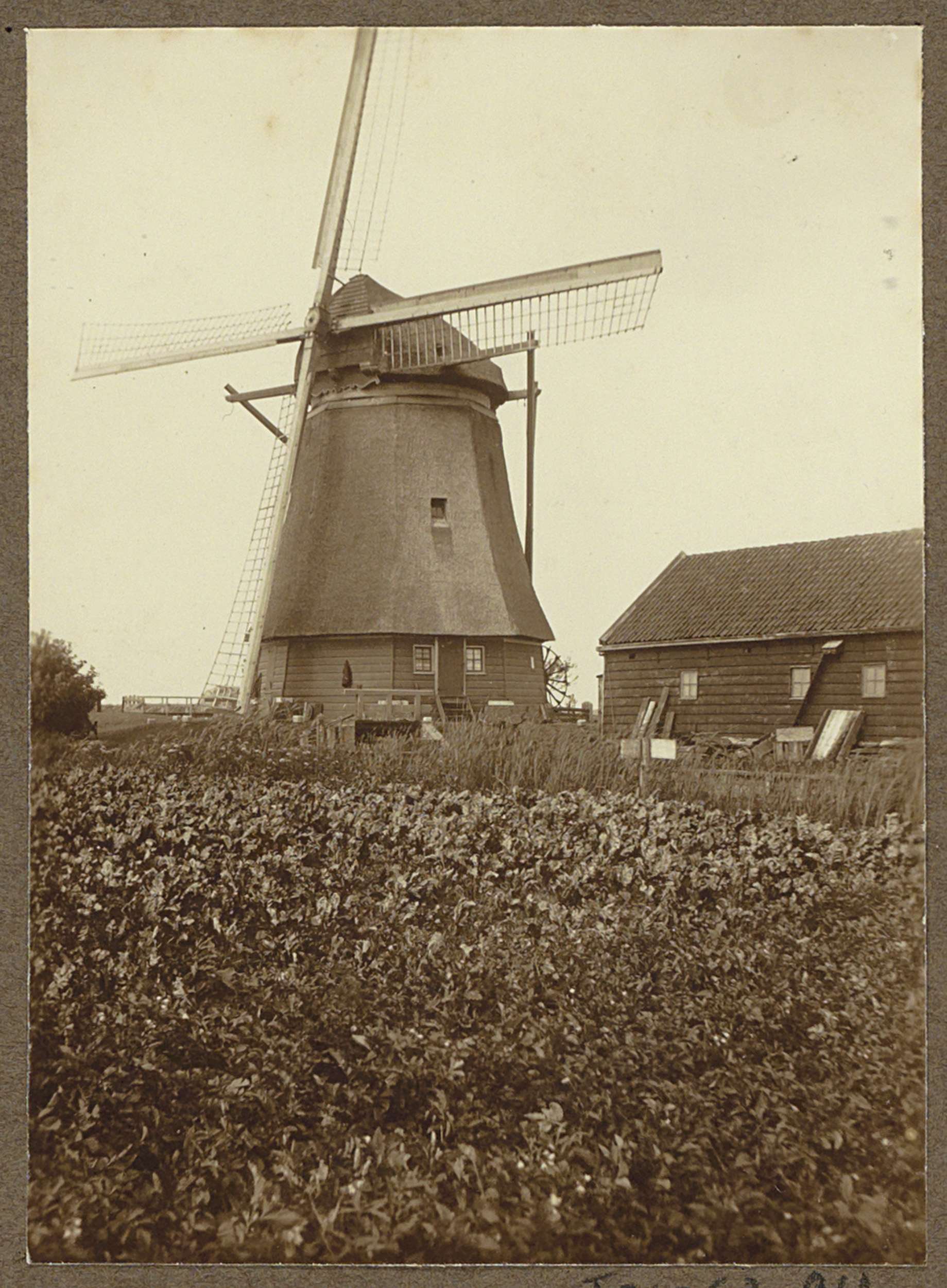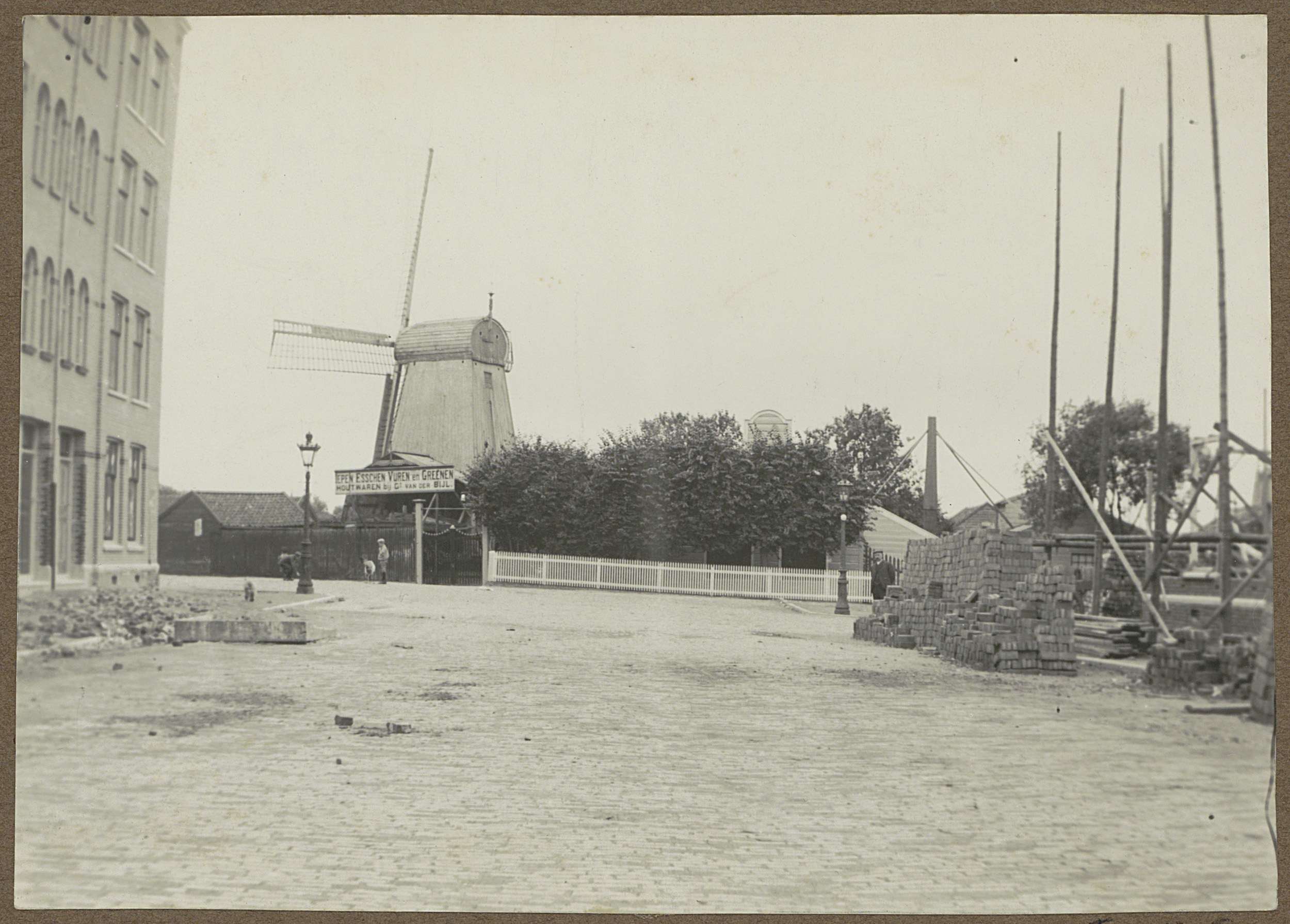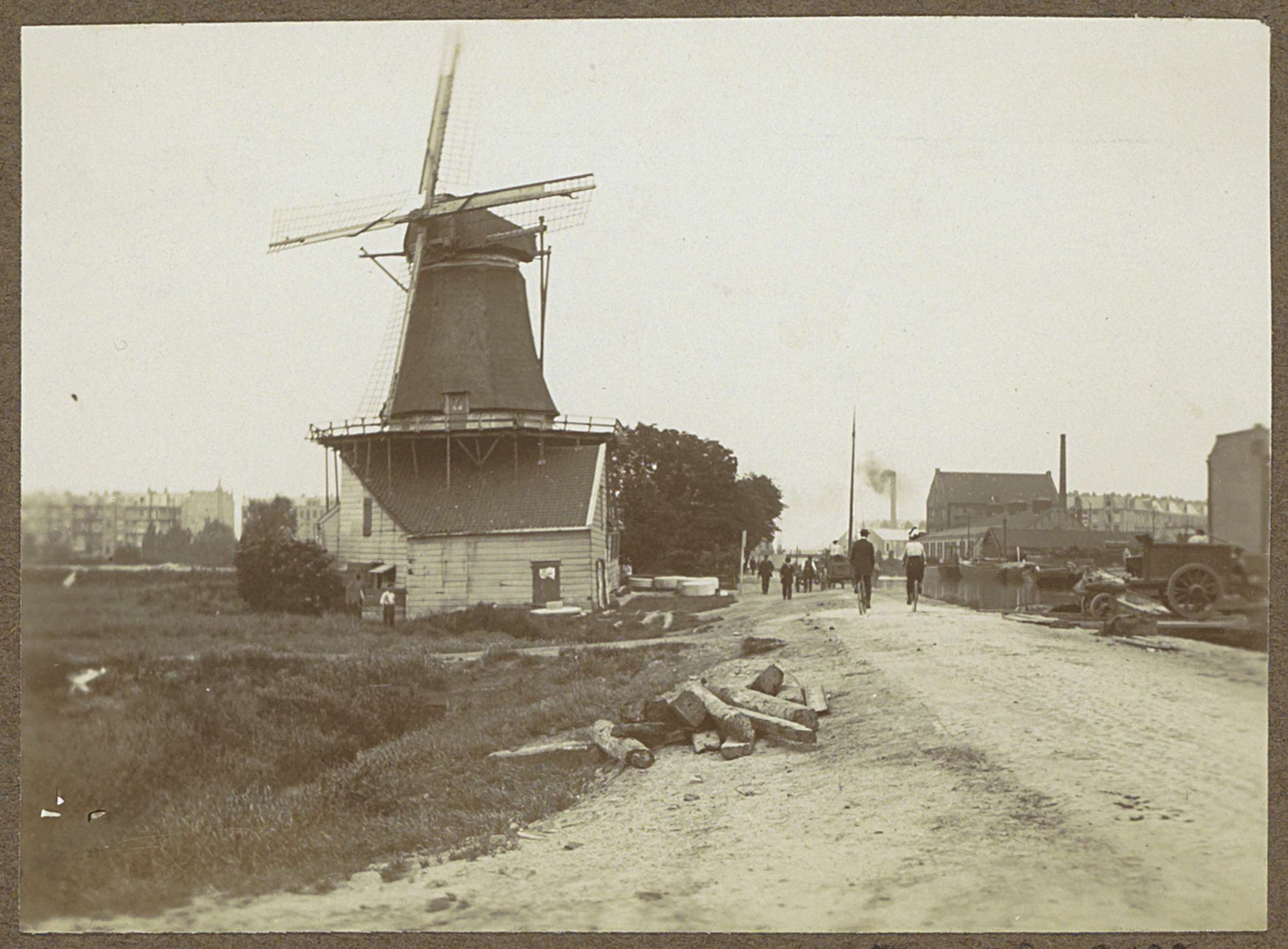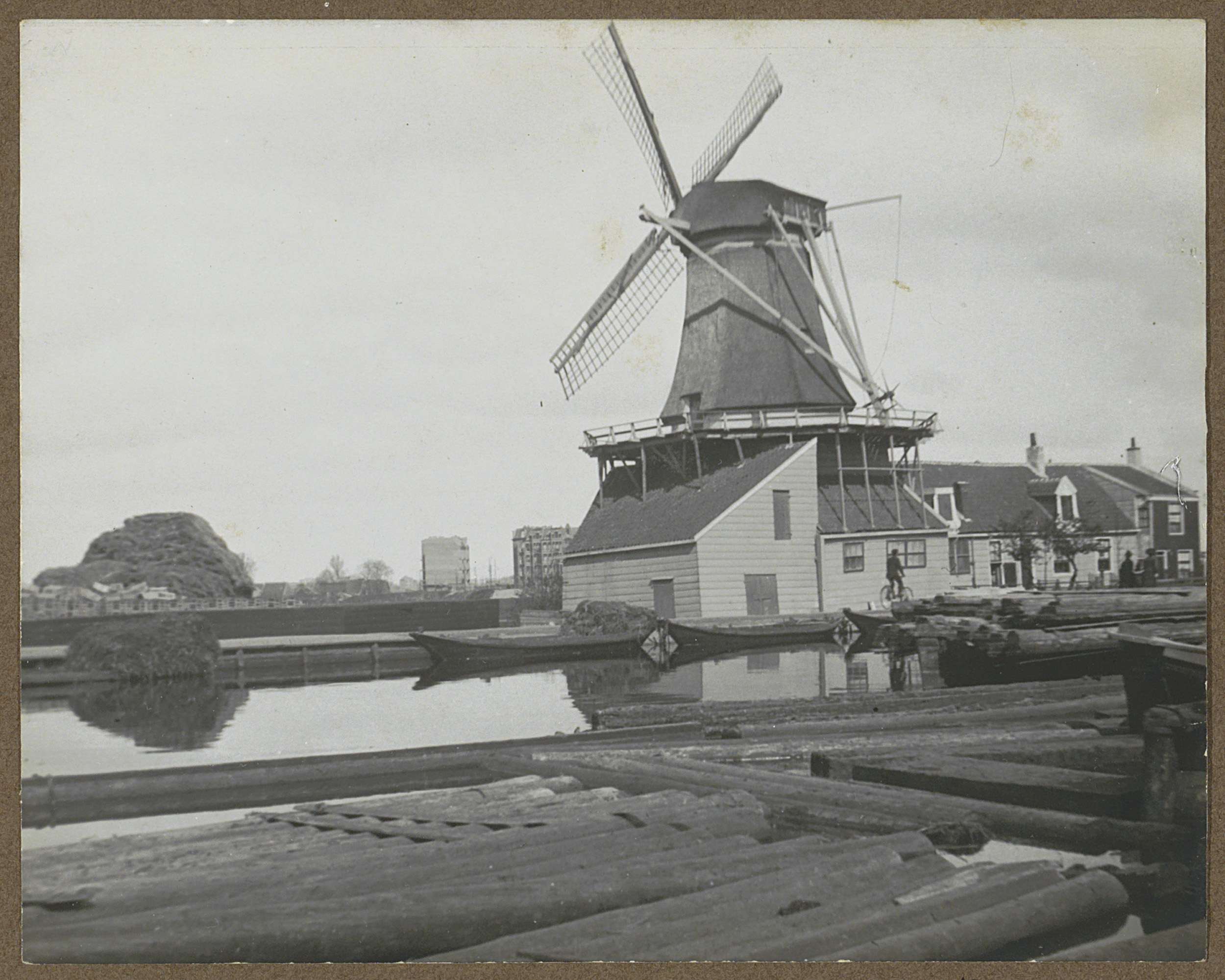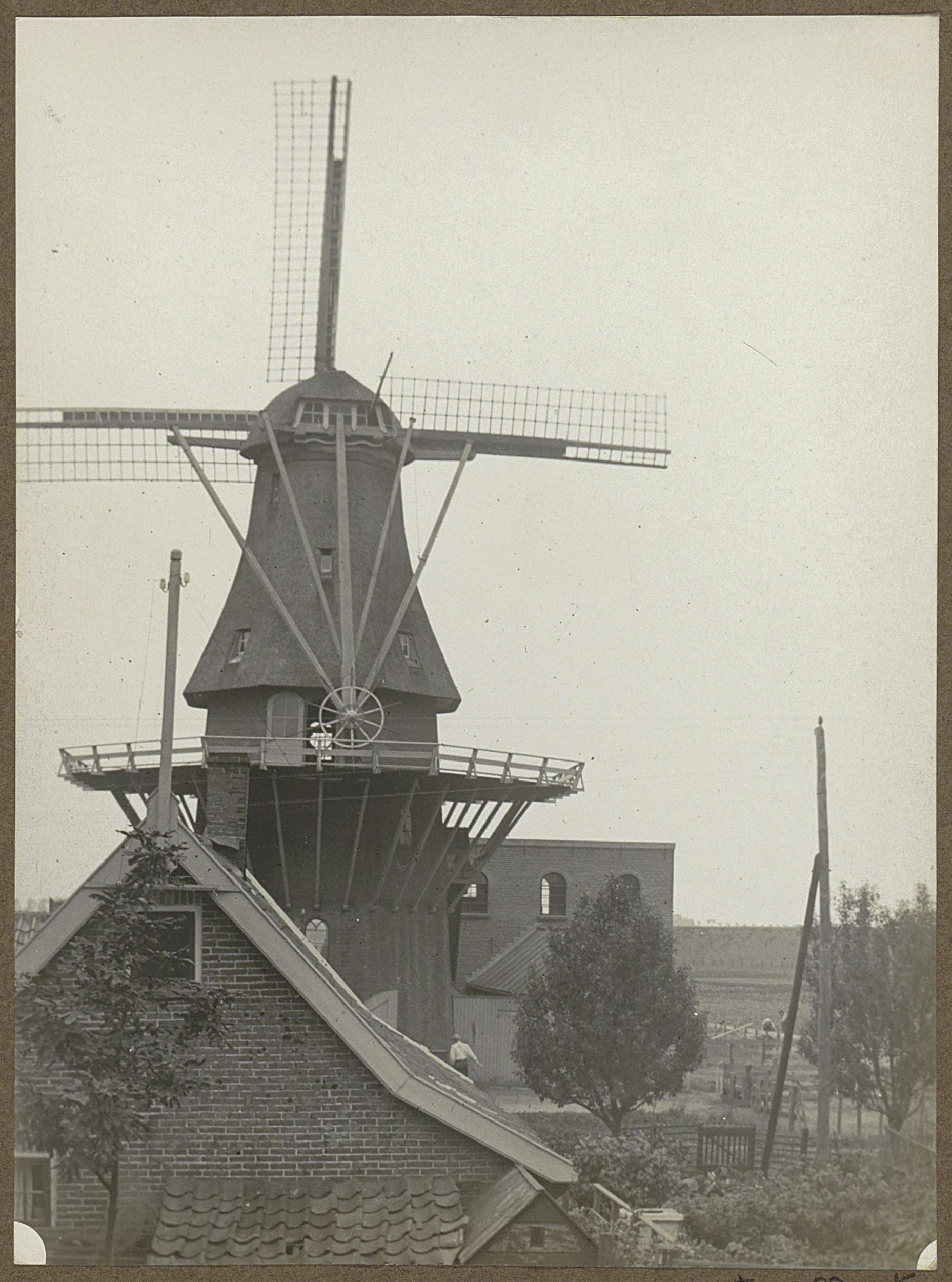 Huizen bij een molen aan de Baarsjes te Amsterdam