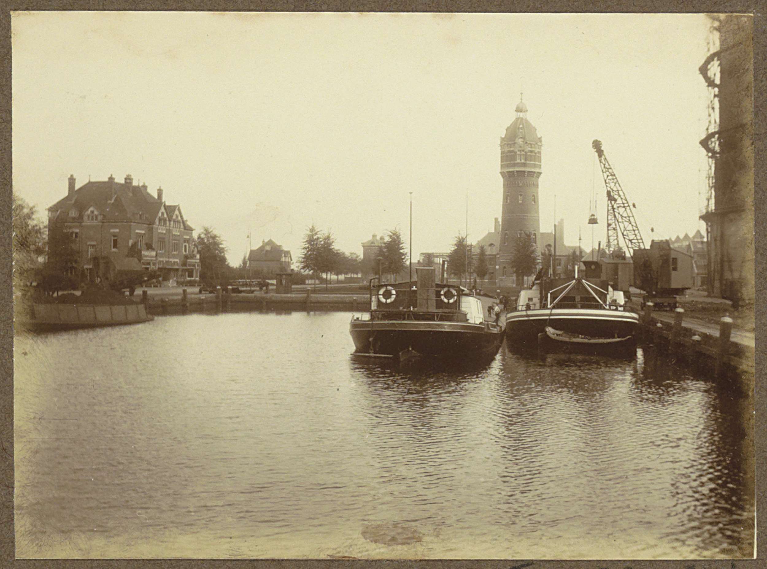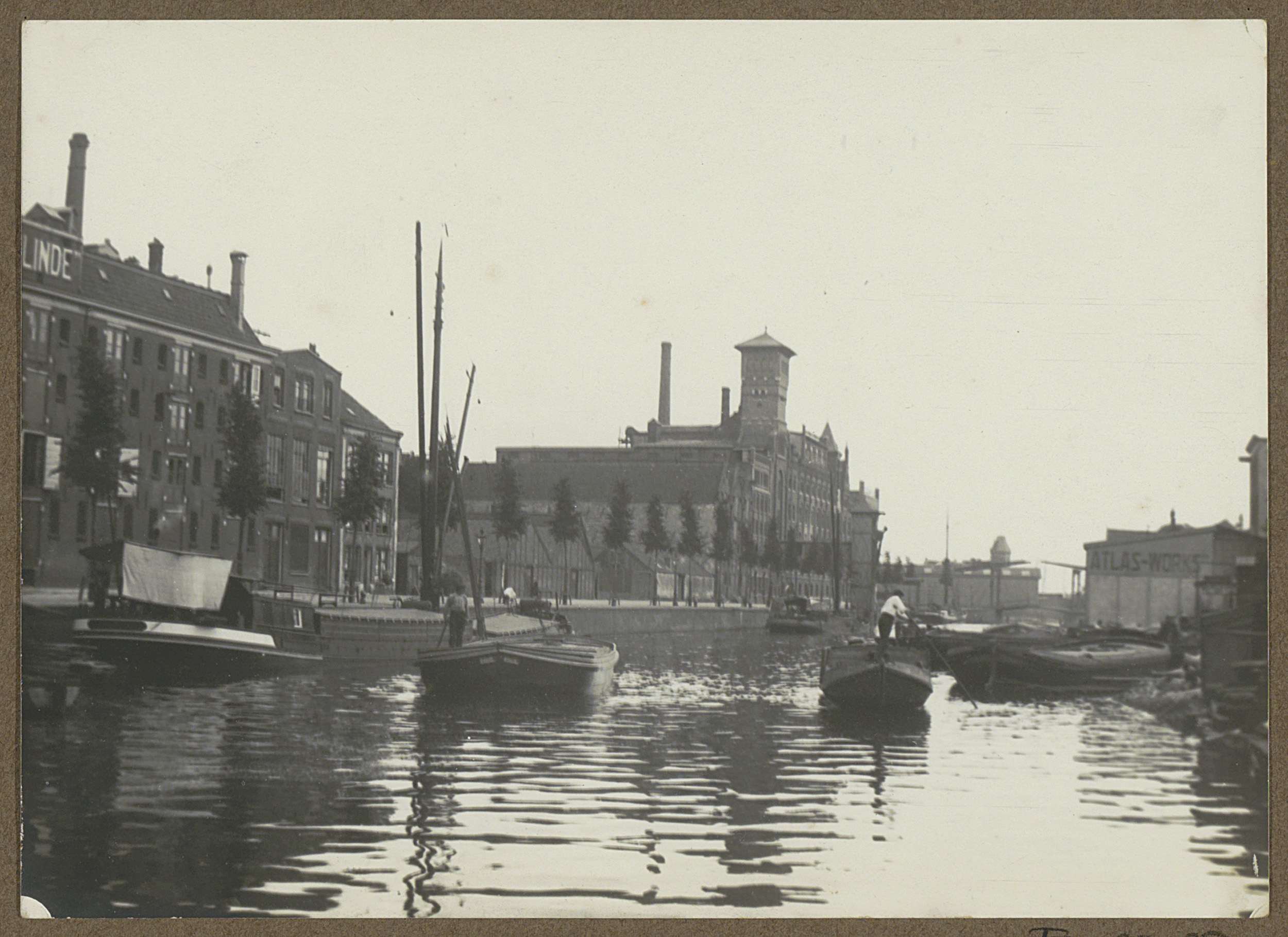 Schepen in een haven bij de Zuider Gasfabriek te Ams...