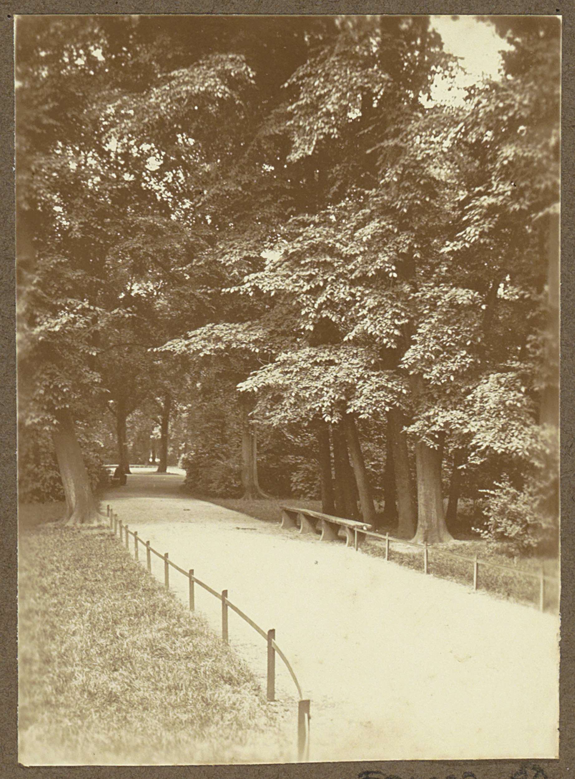 Wandelpad met bank in het Amsterdamse Vondelpark
