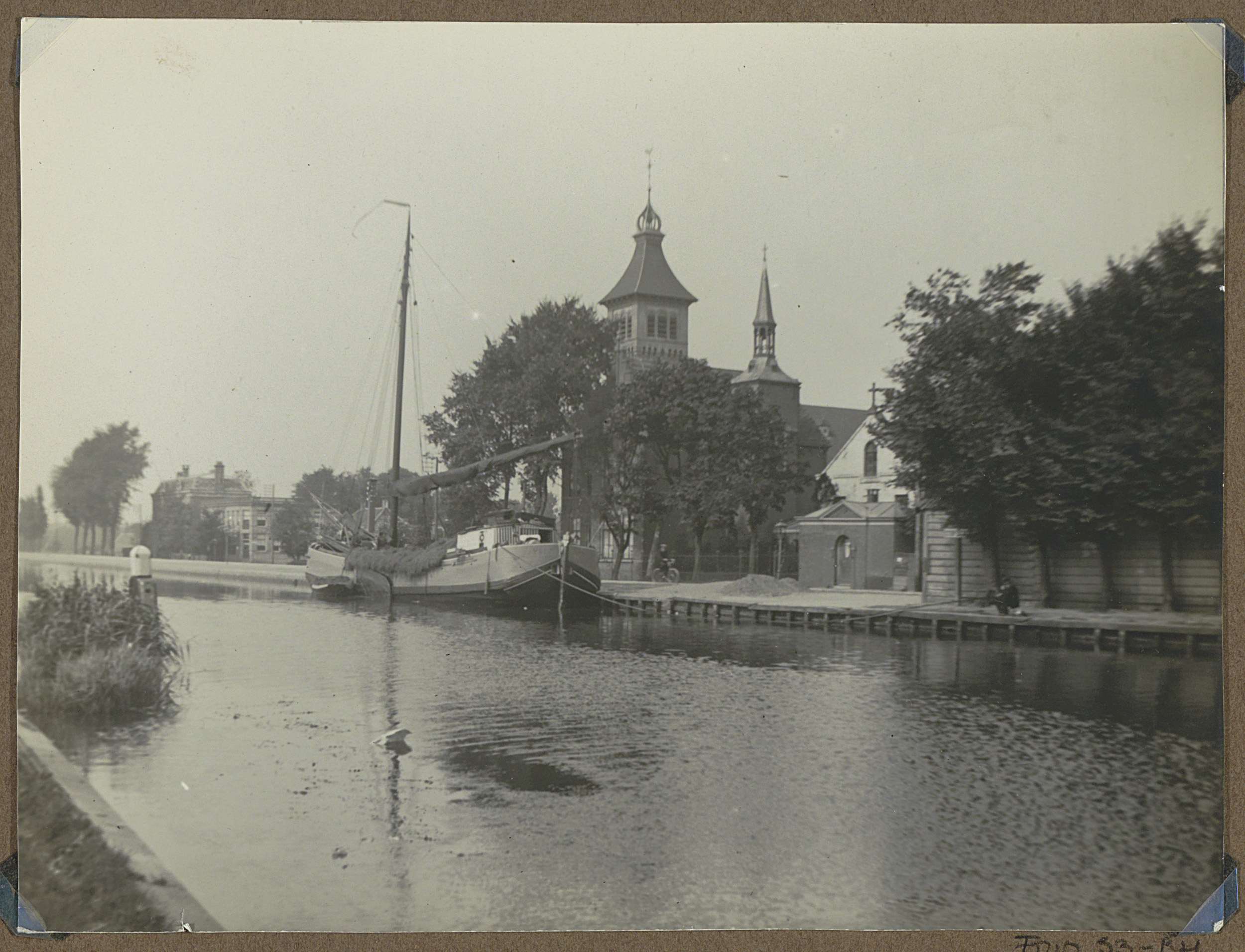 Gezicht op de kade en de R.K. Sint Petrus Banden Ker...