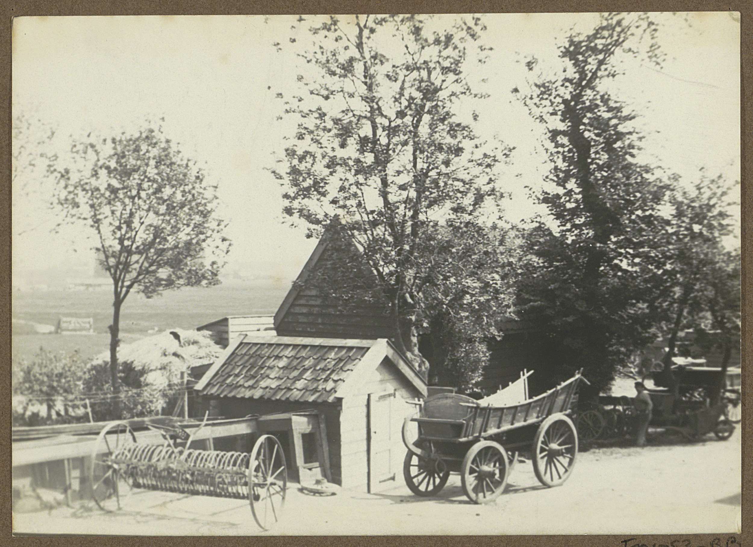 Boerderij met een kar en een landbouwmachine te Slot...
