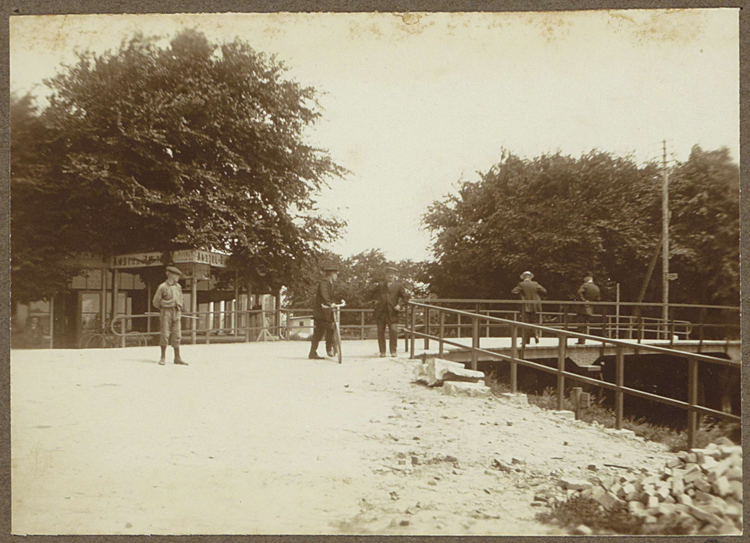 Voorbijgangers bij de Hartveldse brug in Diemen, met...