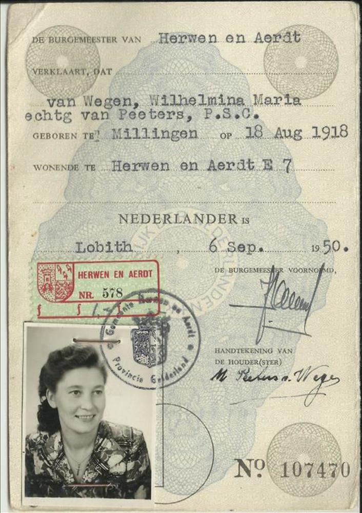 Bewijs van Nederlanderschap van Wilhelmina, Maria va...