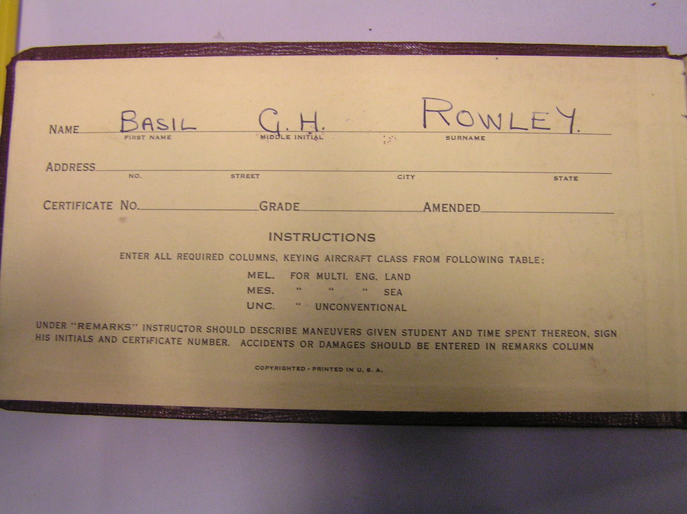 Pilot Log Book, B.G.H. Rowley,