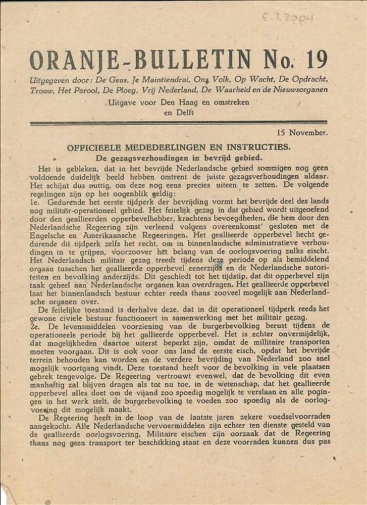 Het Oranjebulletin, No 19, 15 November