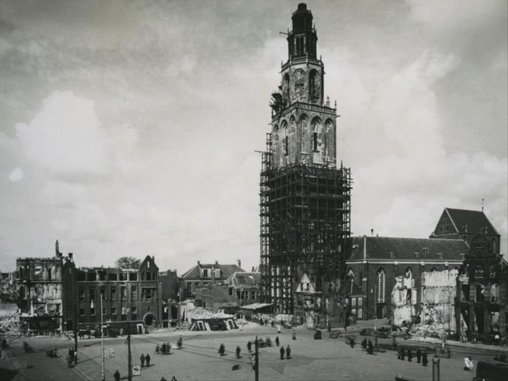 Martinikerk bij Grote Markt te Groningen in steigers