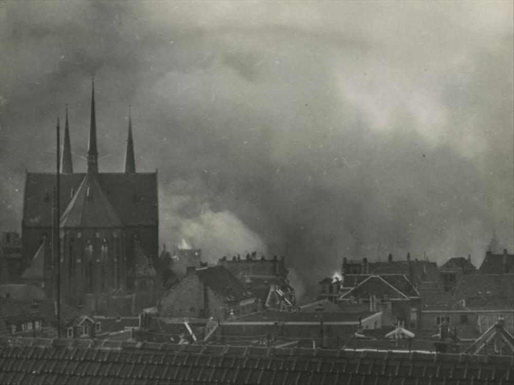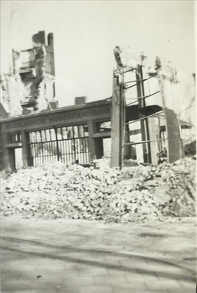 Rotterdam na het bombardement in mei 1940; Middensta...