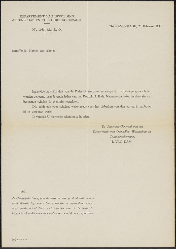 Brief het Ministerie van Onderwijs, Wetenschap en Cu...