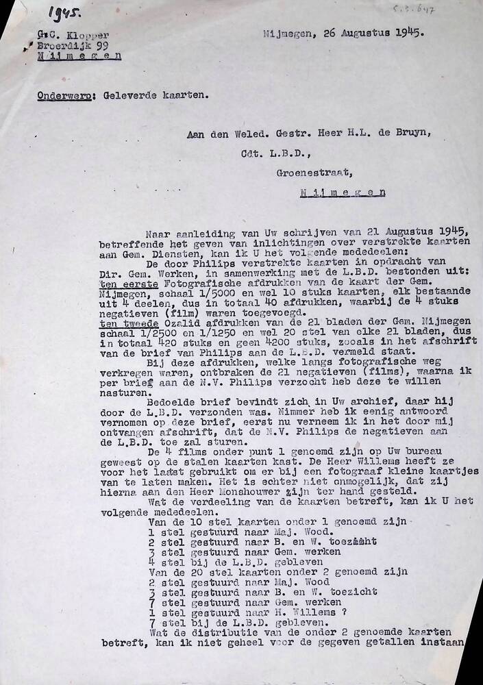 Luchtbeschermingsdienst Nijmegen 1945-1946. Kopie va...