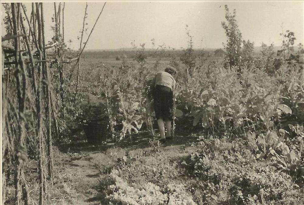 vrouw aan het werk in moestuin, Malden