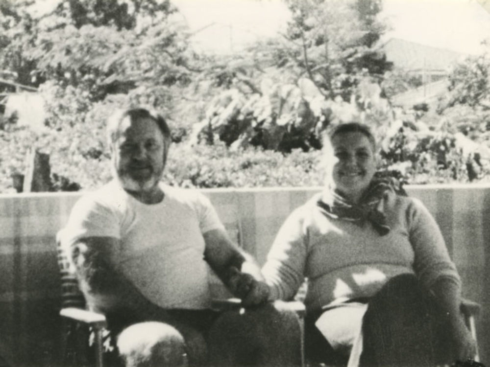 Foto man in t-shirt en vrouw in trui.