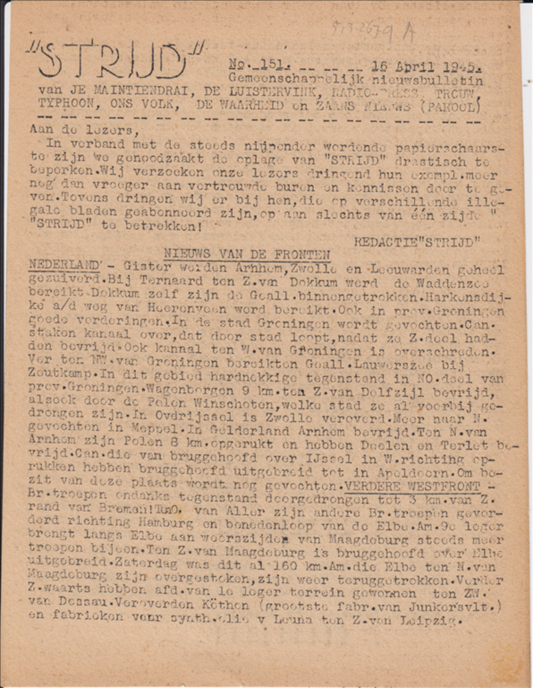 "Strijd" No. 151, 16 April 1945
