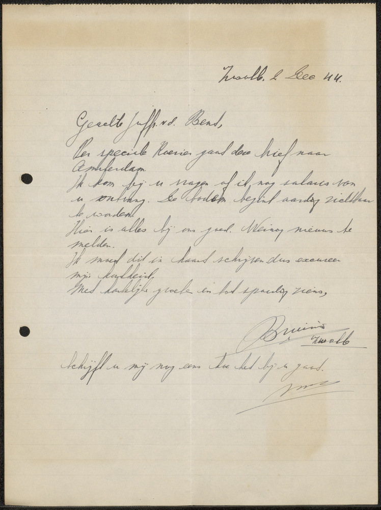 Brief uit Zwolle van 2 december 1944