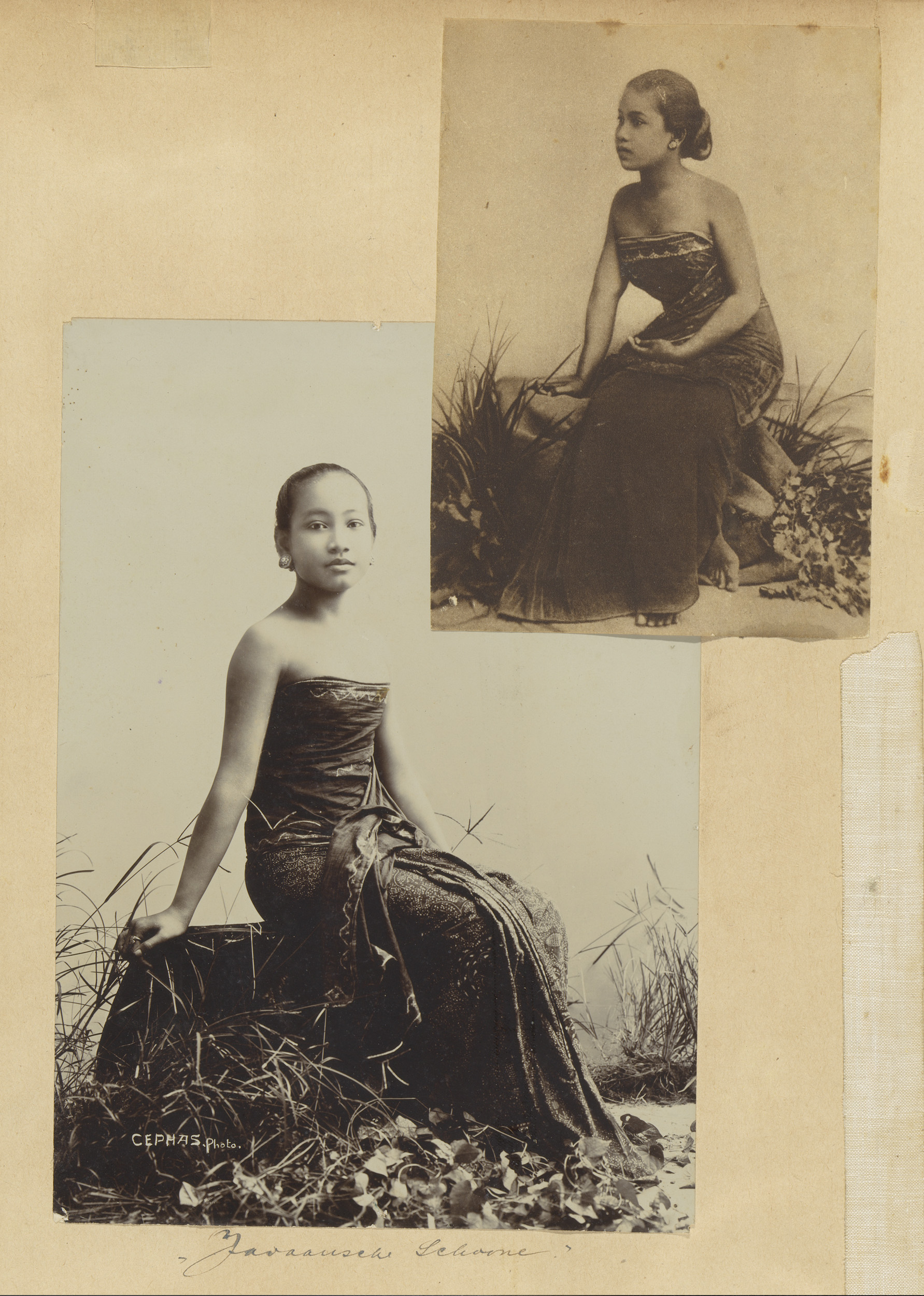 Twee portretten van jonge Indonesische vrouwen, zitt...