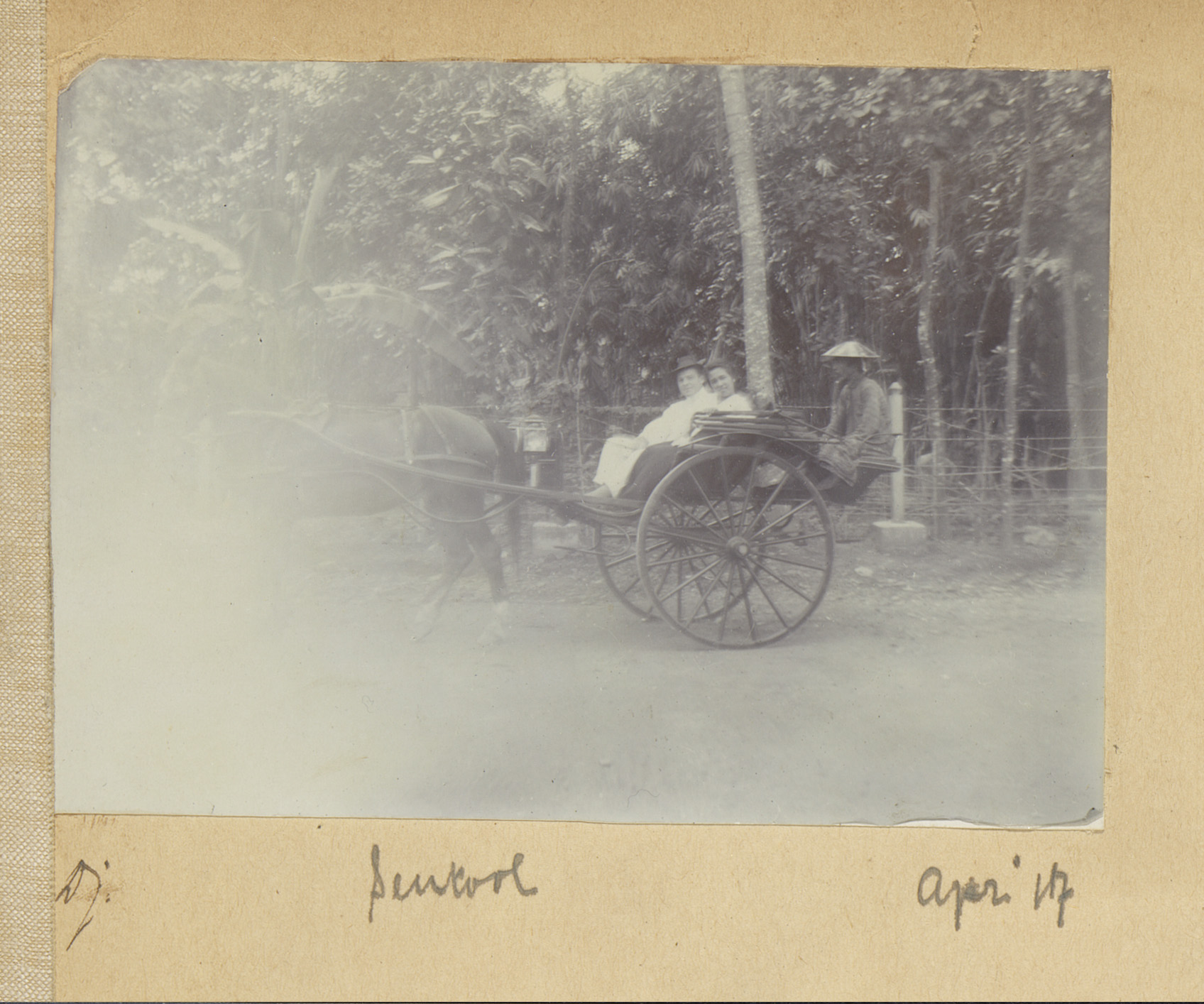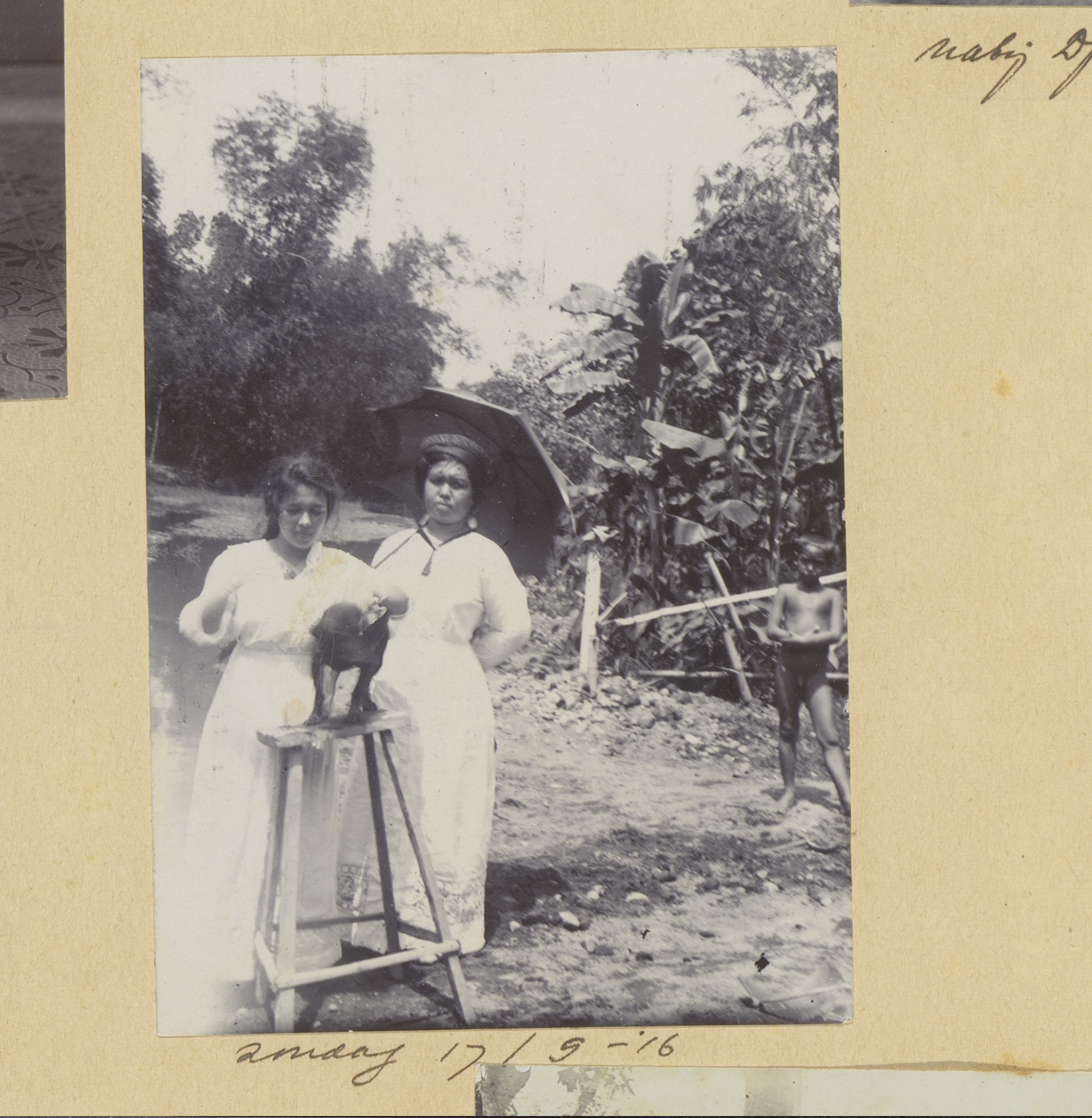 Twee vrouwen bij een landweg in Nederlands-Indië