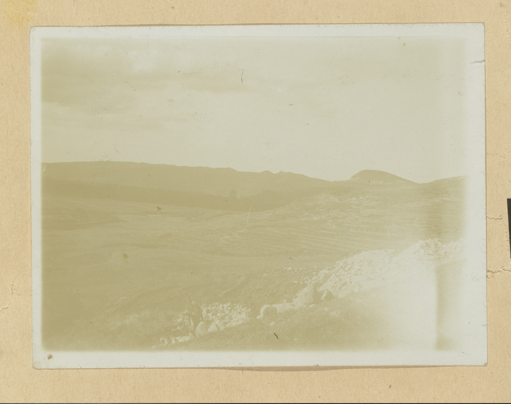 Gezicht op een veld aan de voet van bergen in Nederl...
