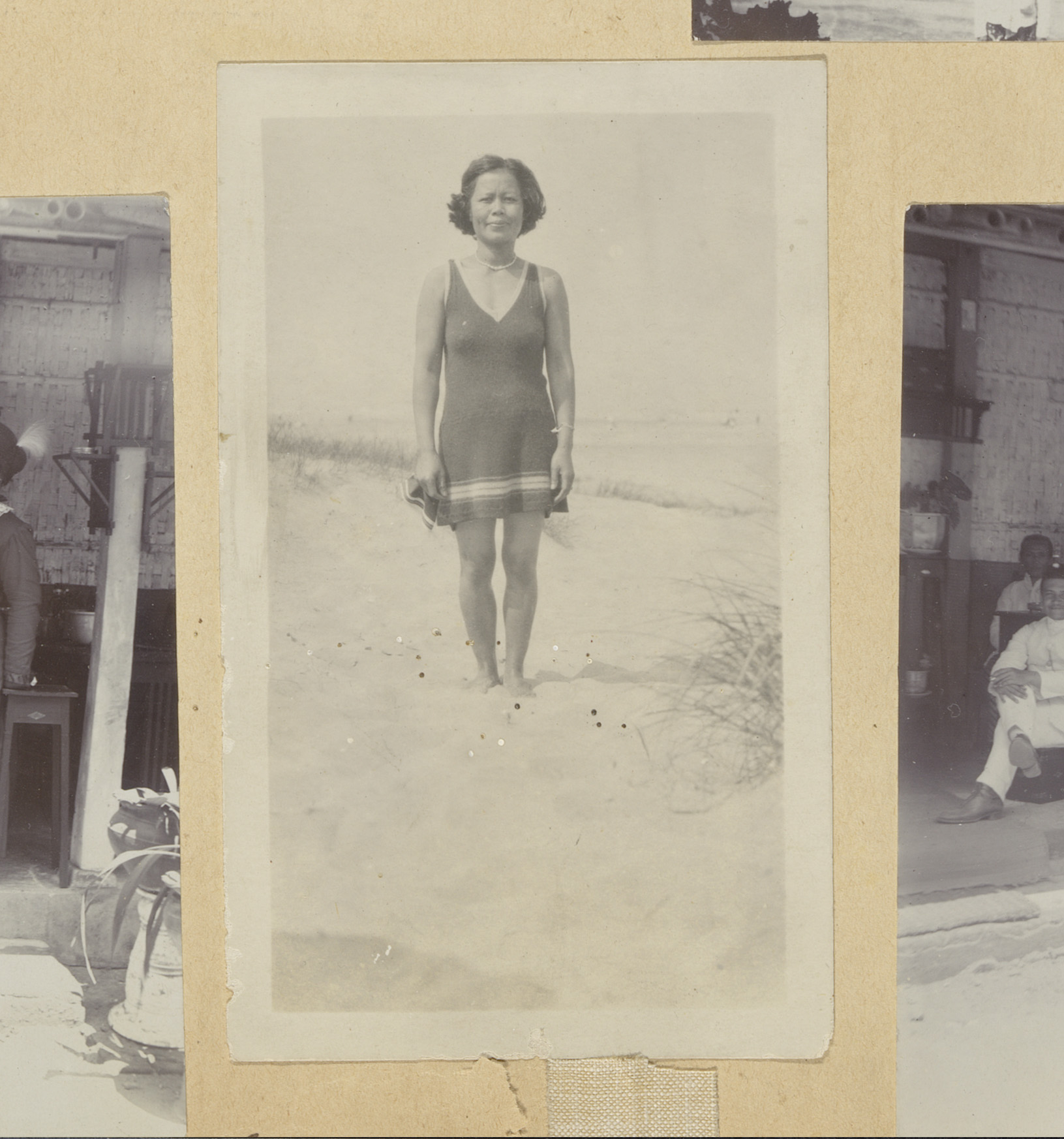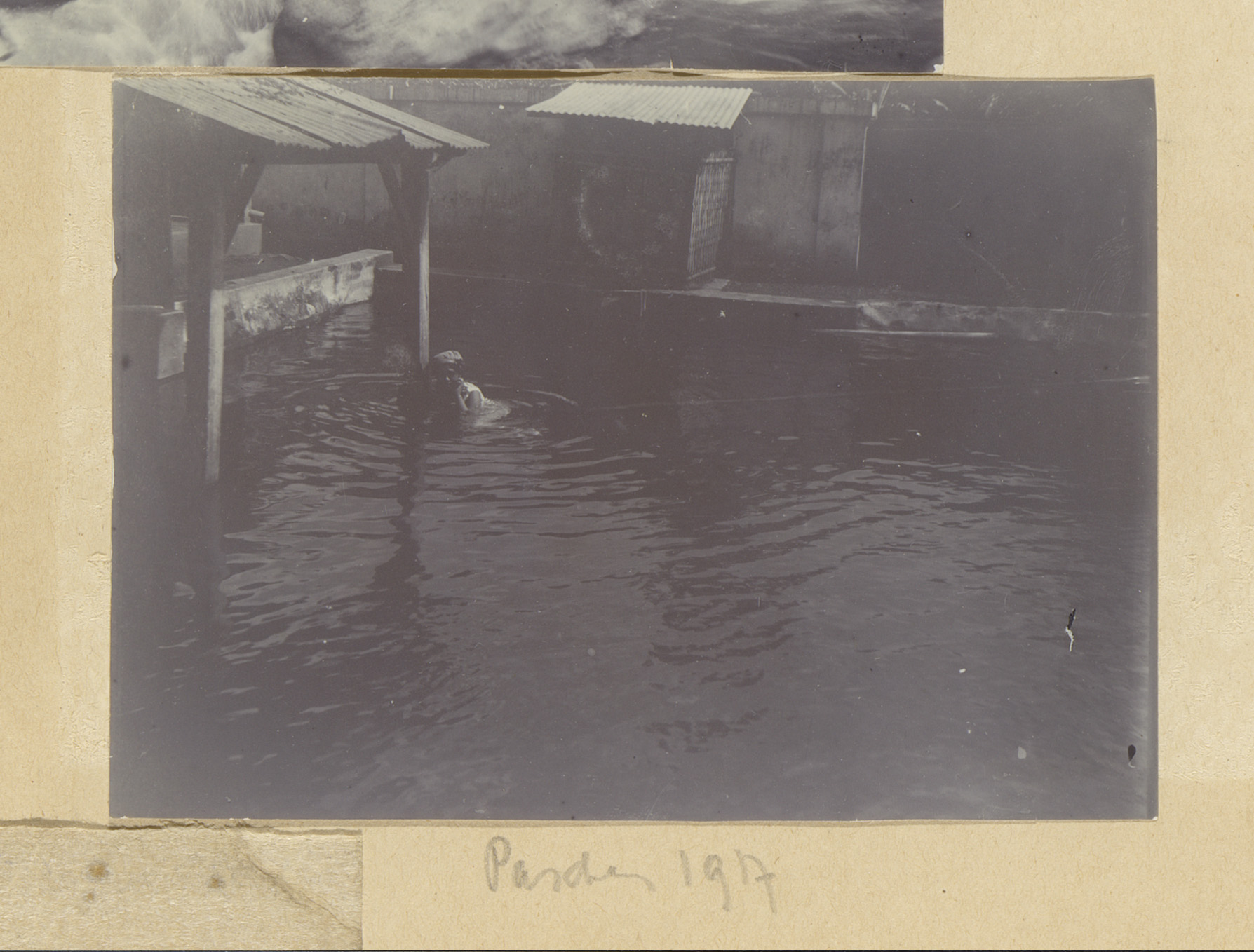 Persoon in zwembad in Nederlands-Indië met Pasen