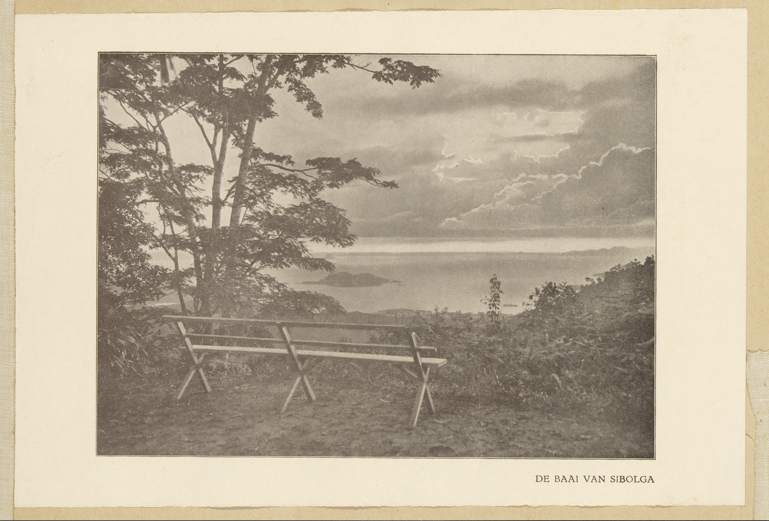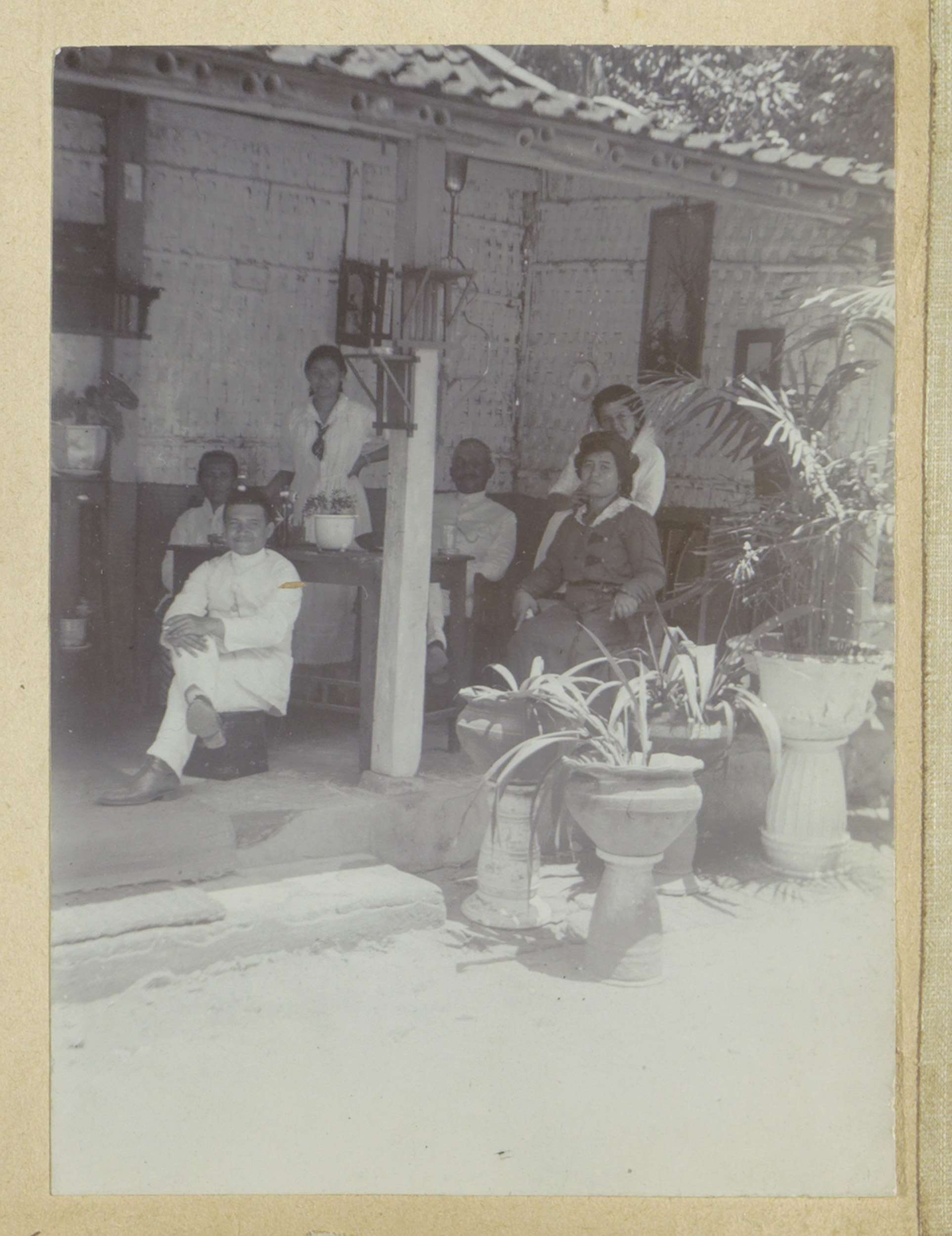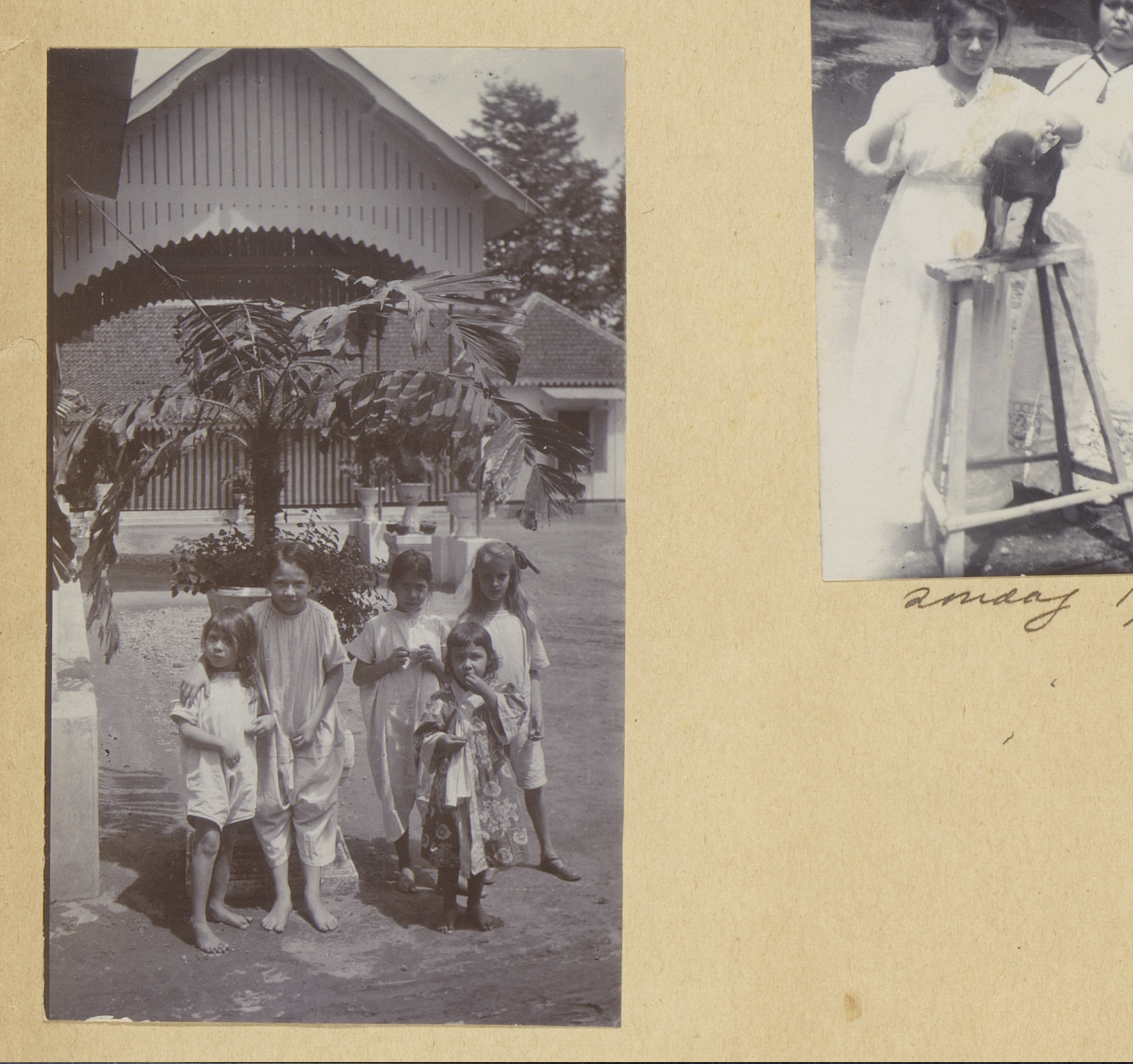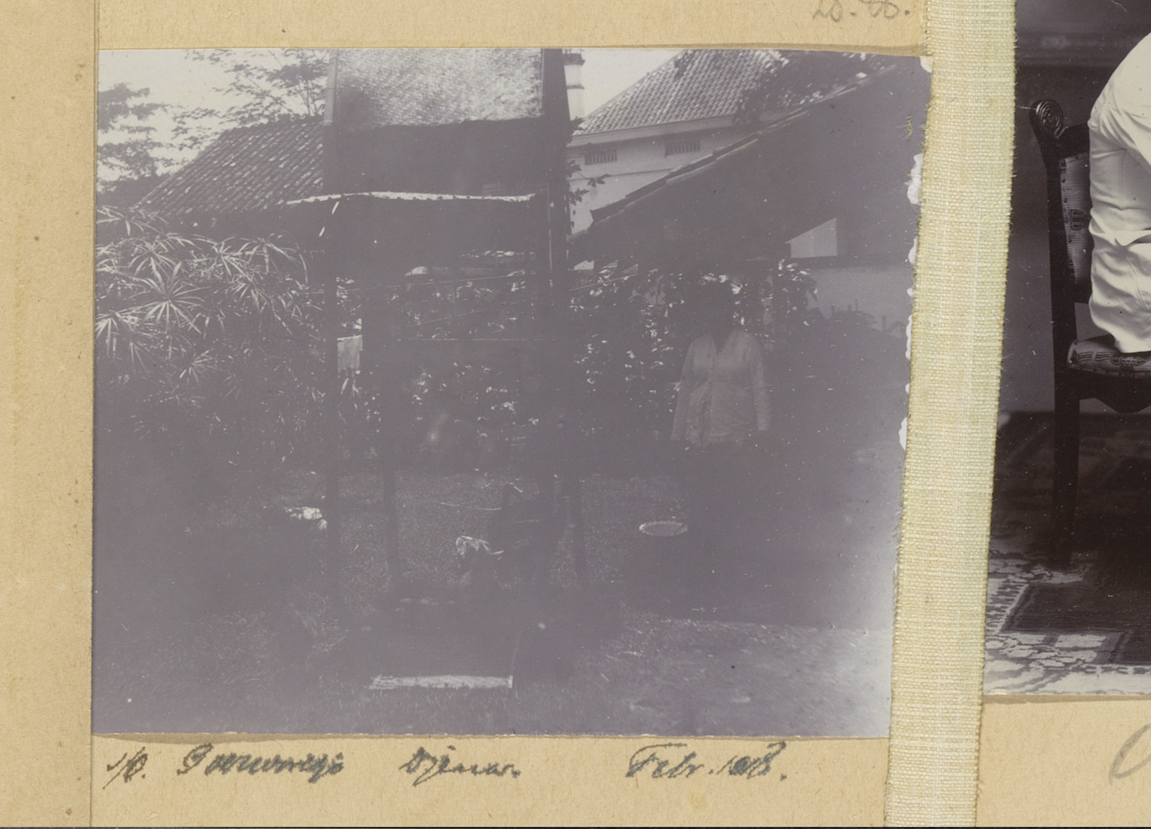 Gezicht op een huis met tennisbaan in Nederlands-Indië