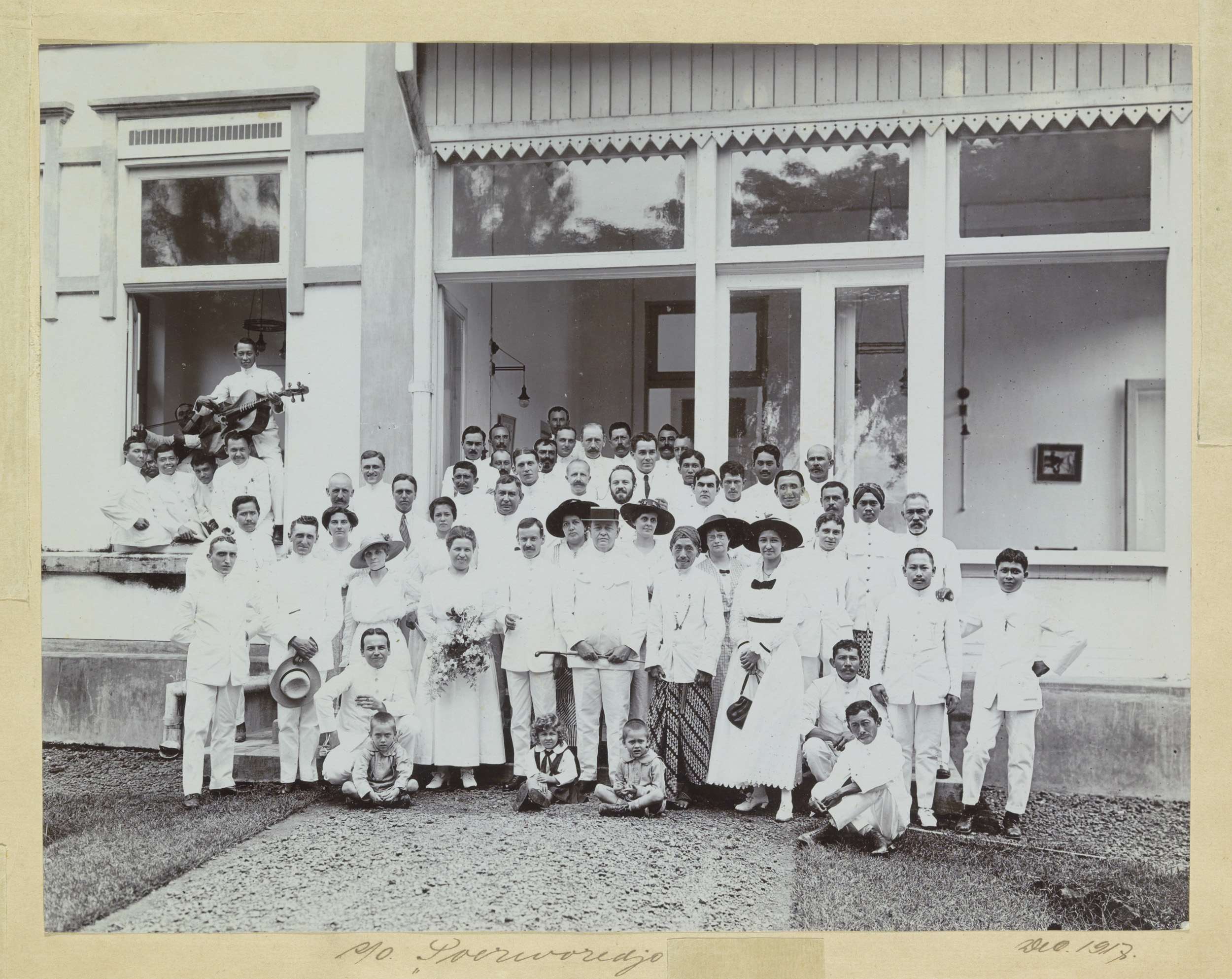 Groepsportret van Indonesiërs en Europeanen voor een...