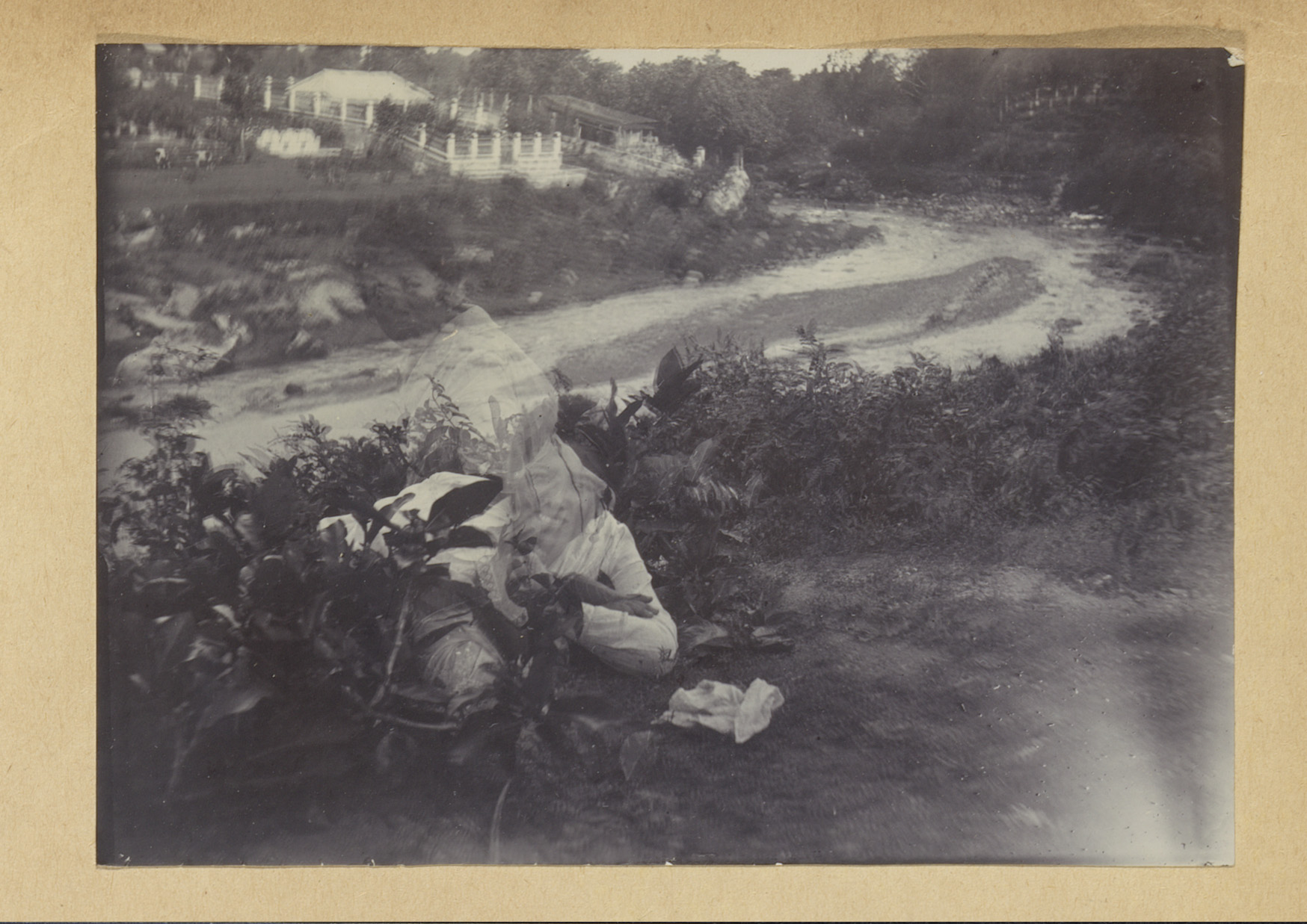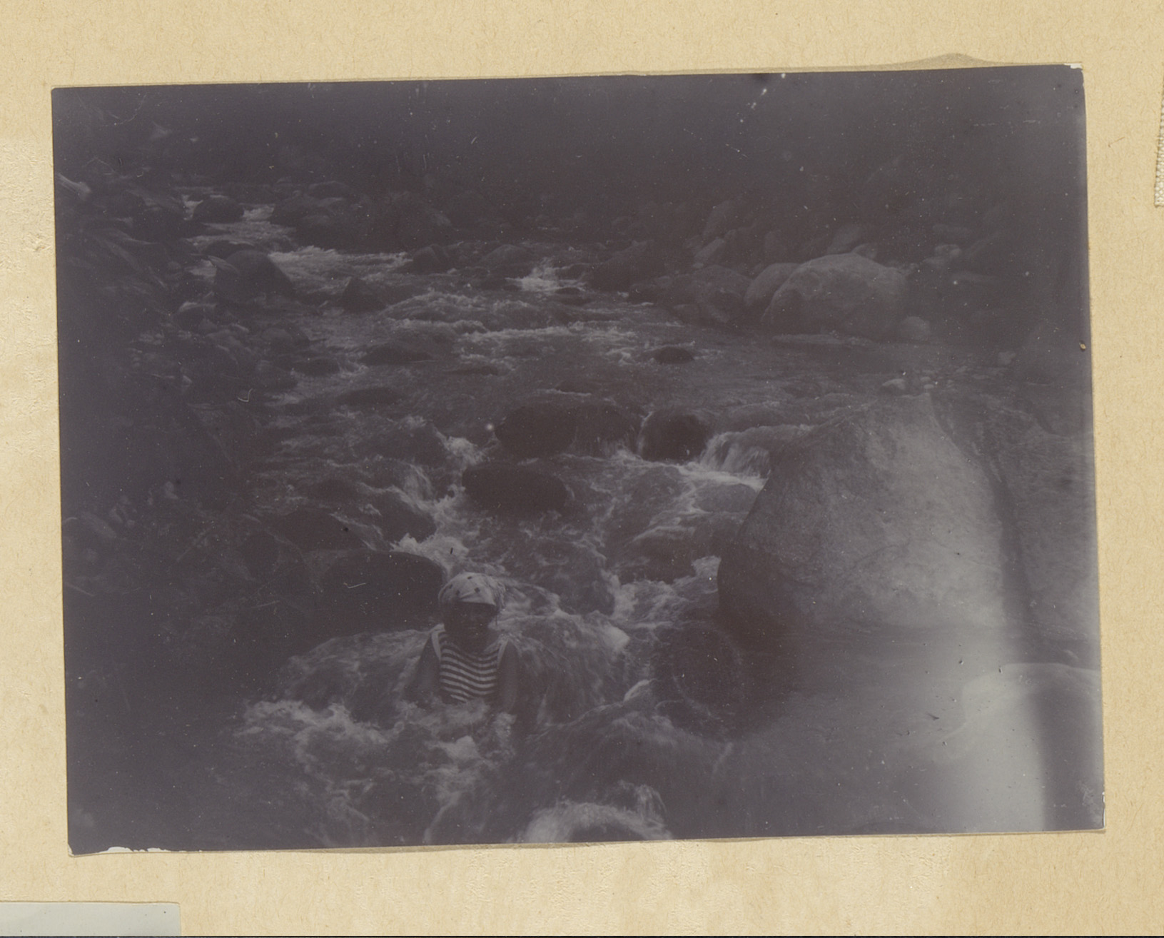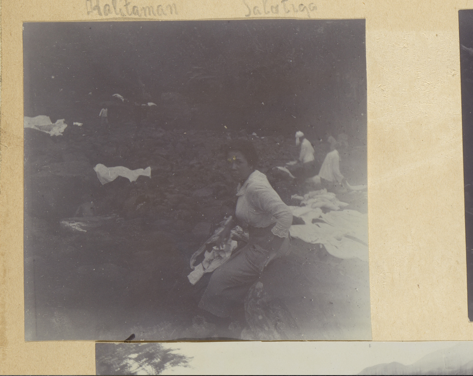 Vrouw zittend in een beek, vermoedelijk Kali Taman i...