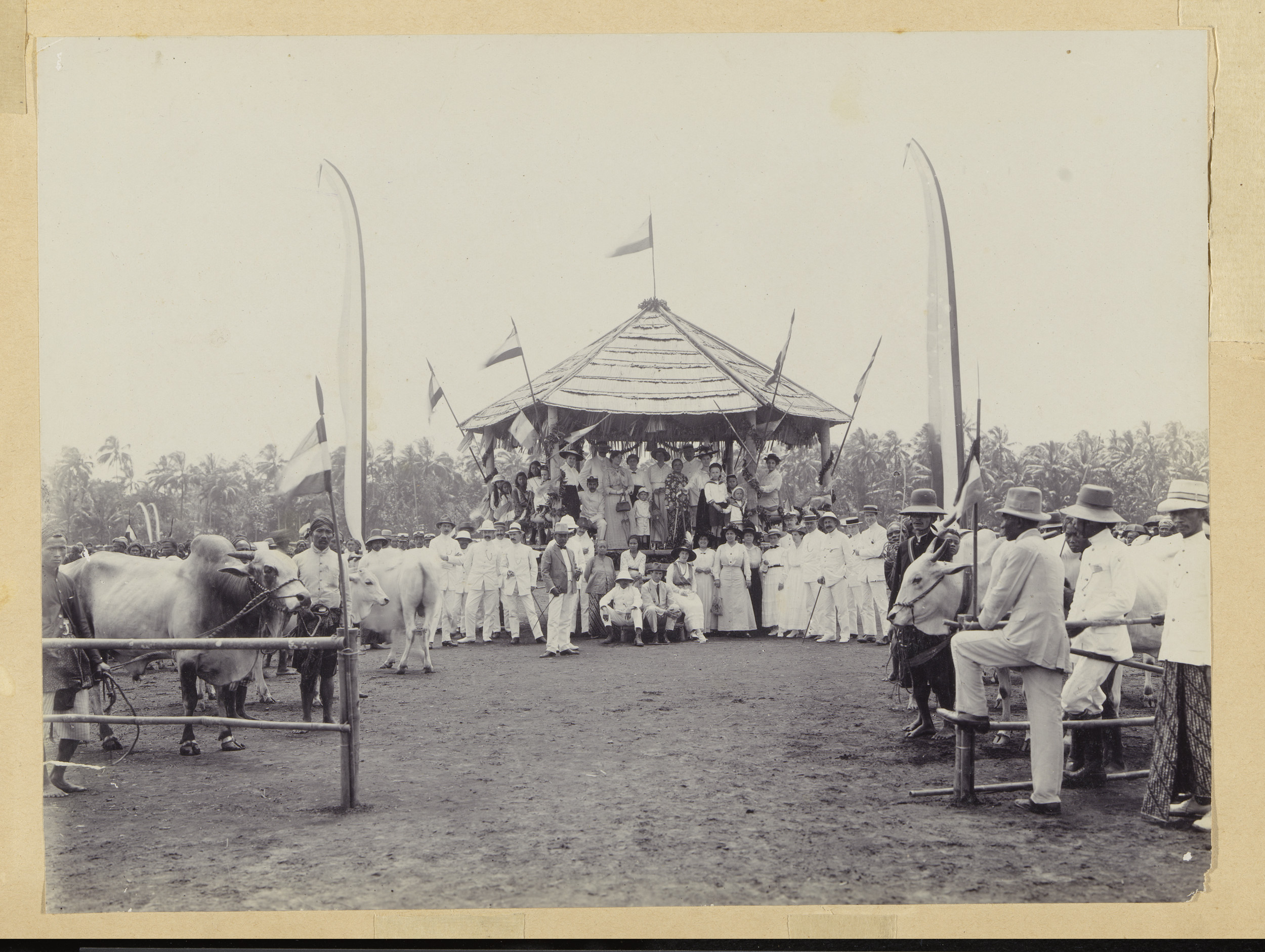 Indonesiërs en Europeanen en buffels bij onbekend ev...