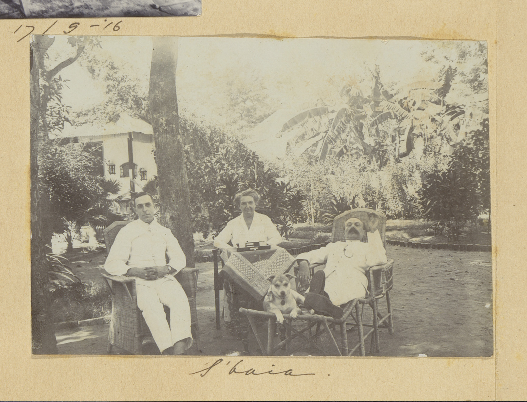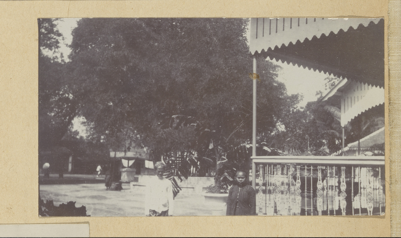 Twee mensen staand bij een veranda, vermoedelijk in ...