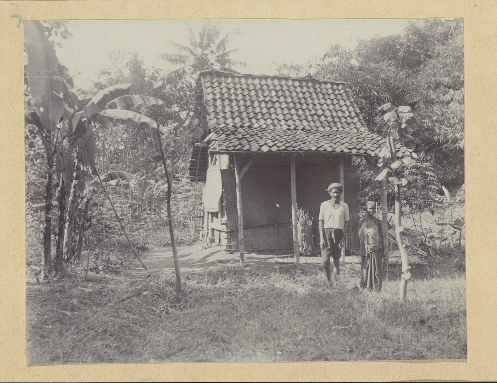 Man en vrouw staand voor een woning in Nederlands-Indië