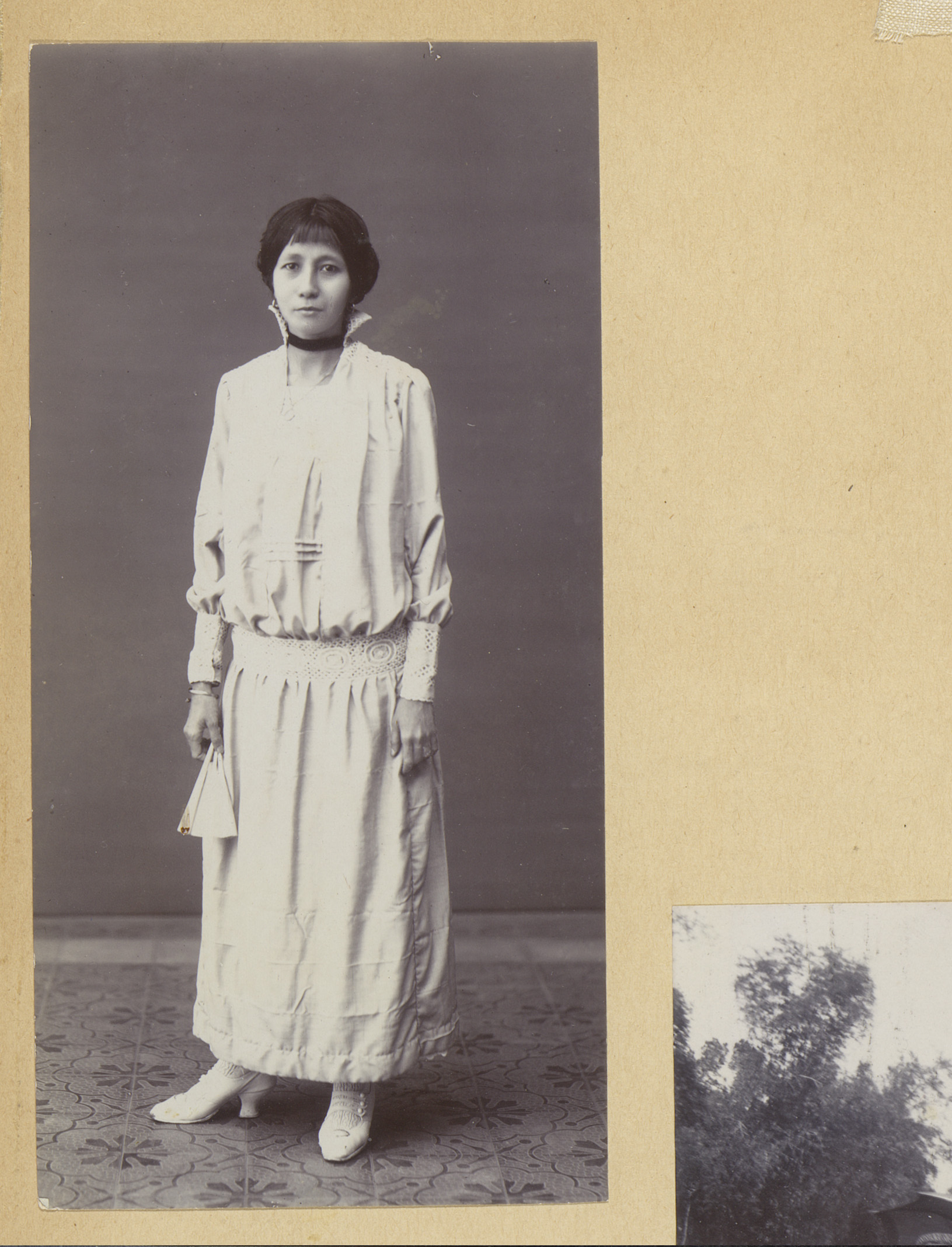 Vrouw achter het stuur van een auto in Nederlands-Indië