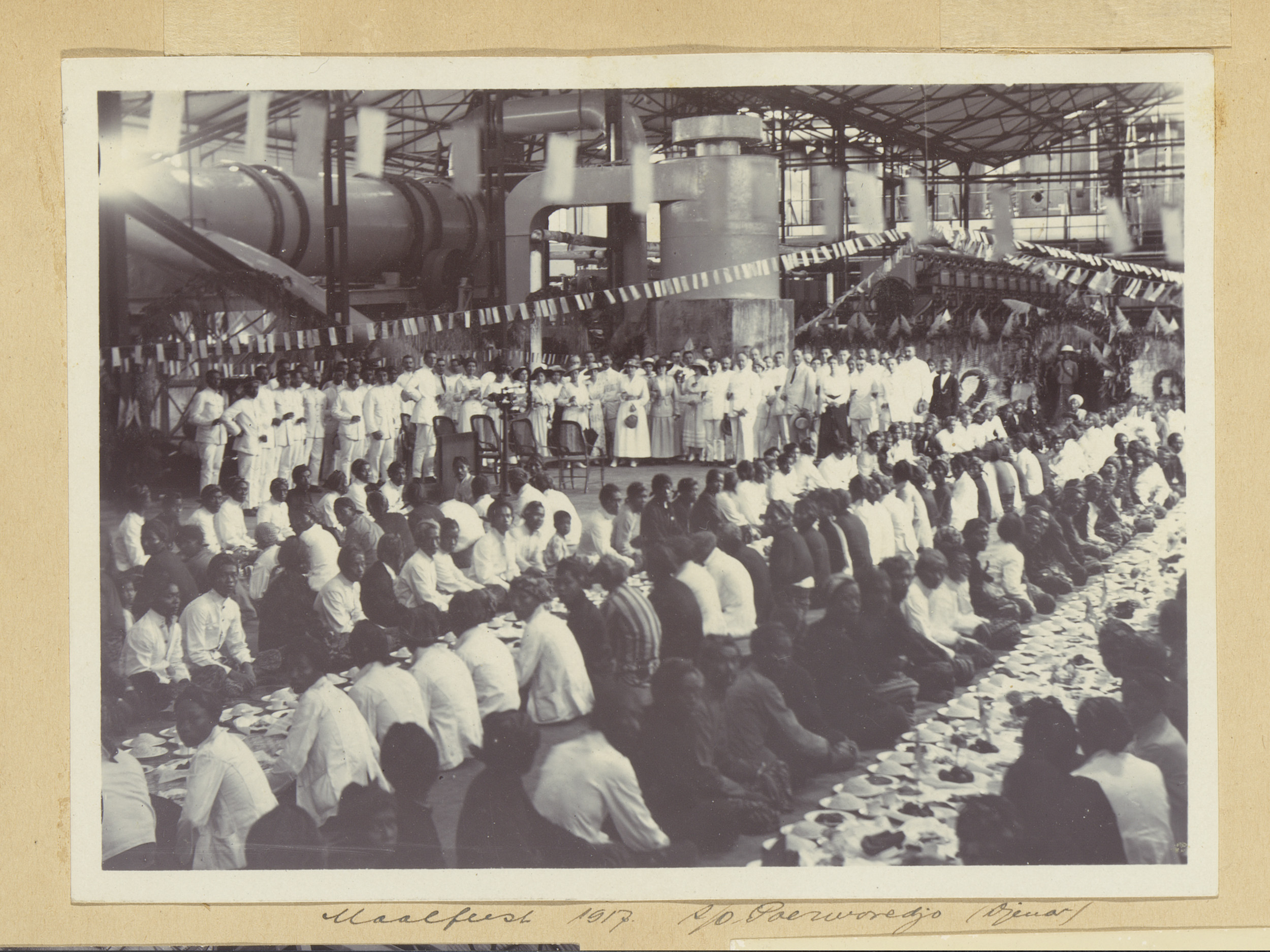 Groepsportret van Indonesiërs en Europeanen bij een ...
