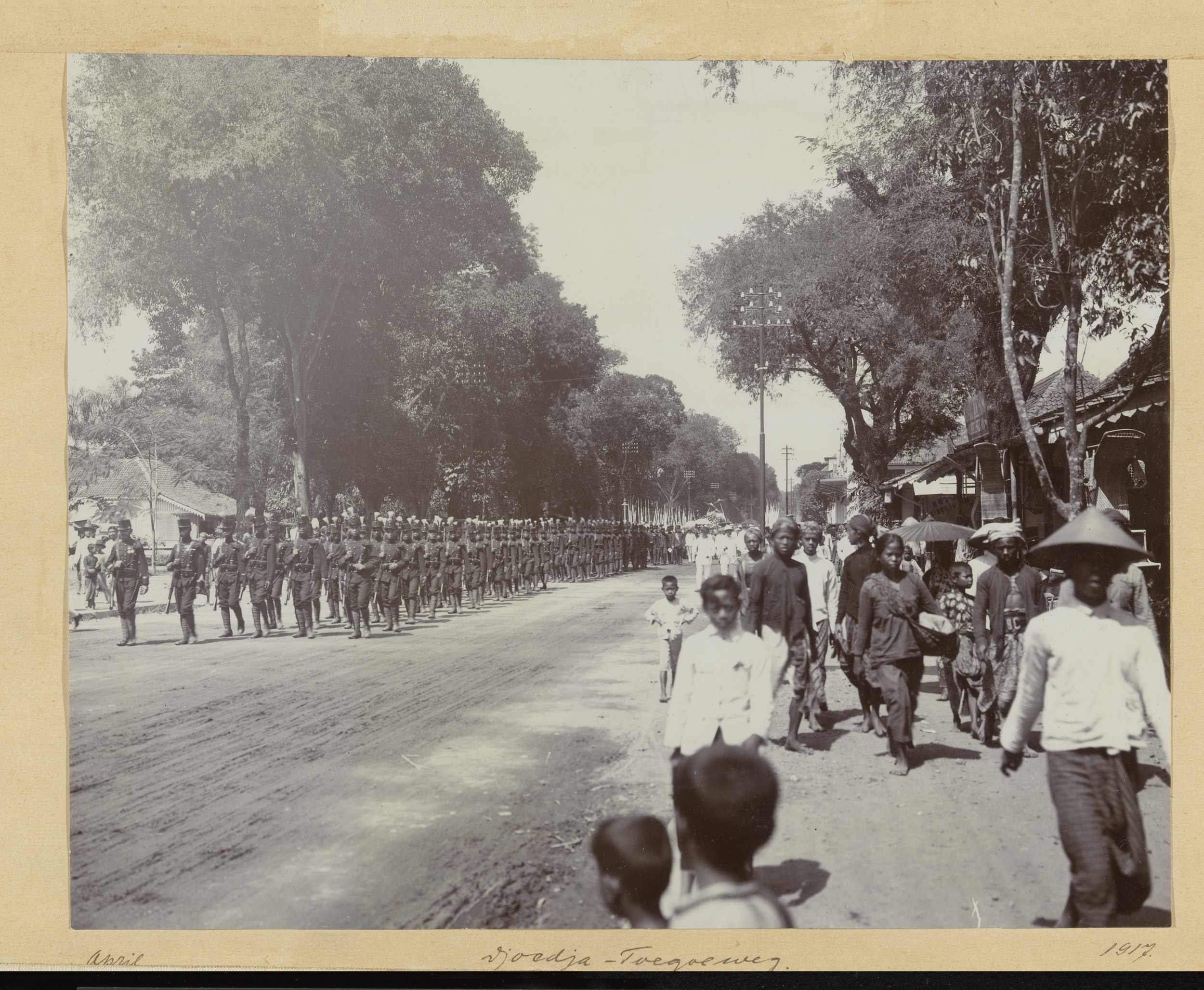 Deelnemers aan een rouwstoet, vermoedelijk in Jogjak...