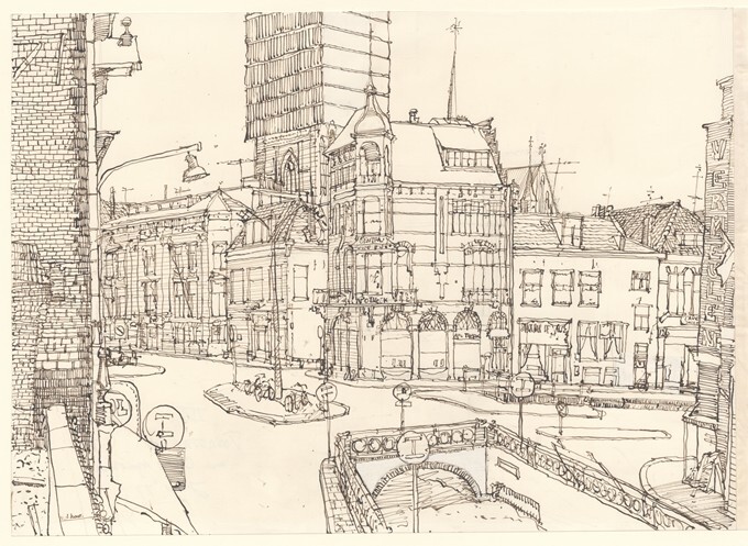 Gezicht vanaf de Tuinen op de Turfmarkt te Leeuwarden