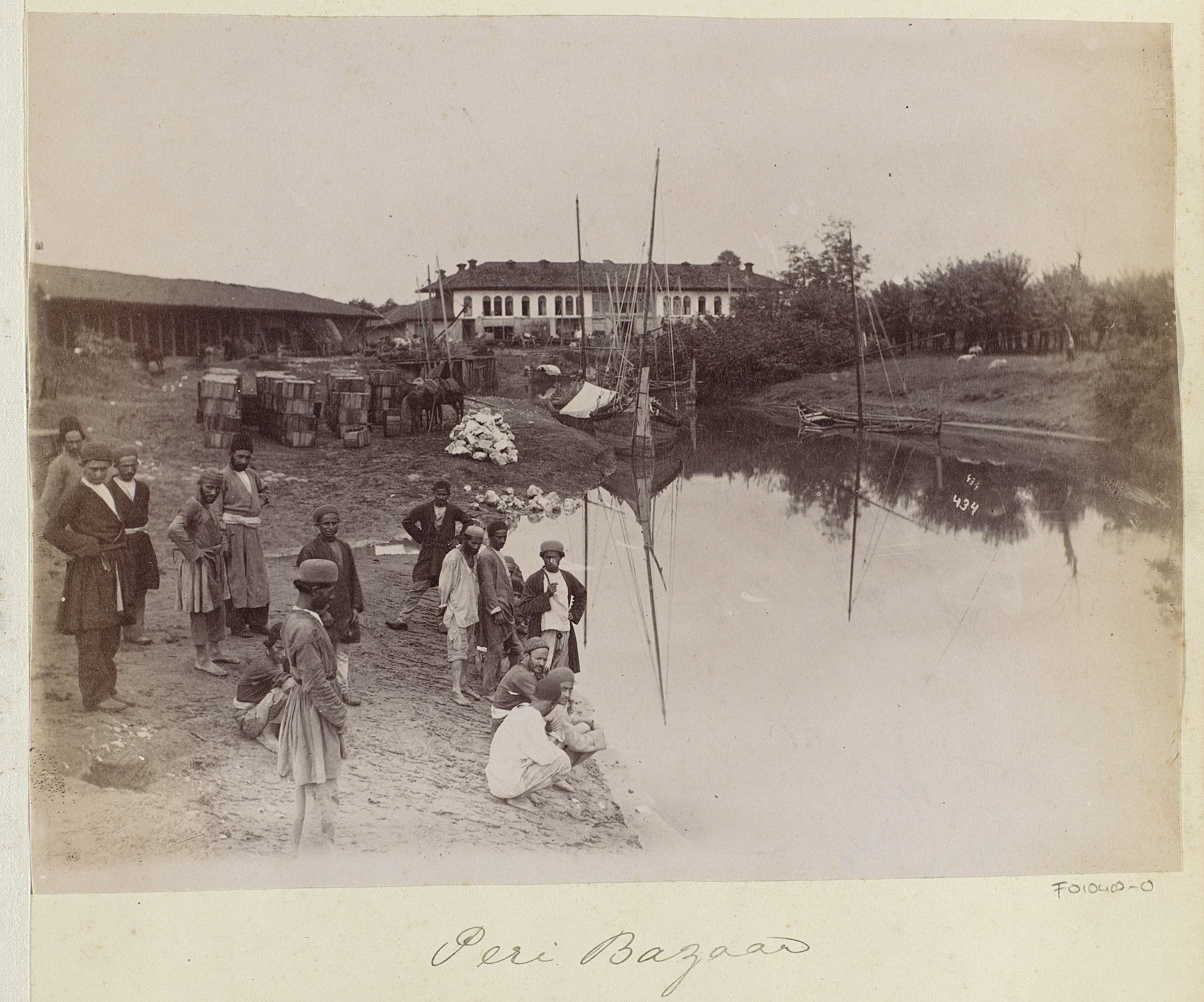 Mannen bij een haven aan de Peri Bazaar in Perzië