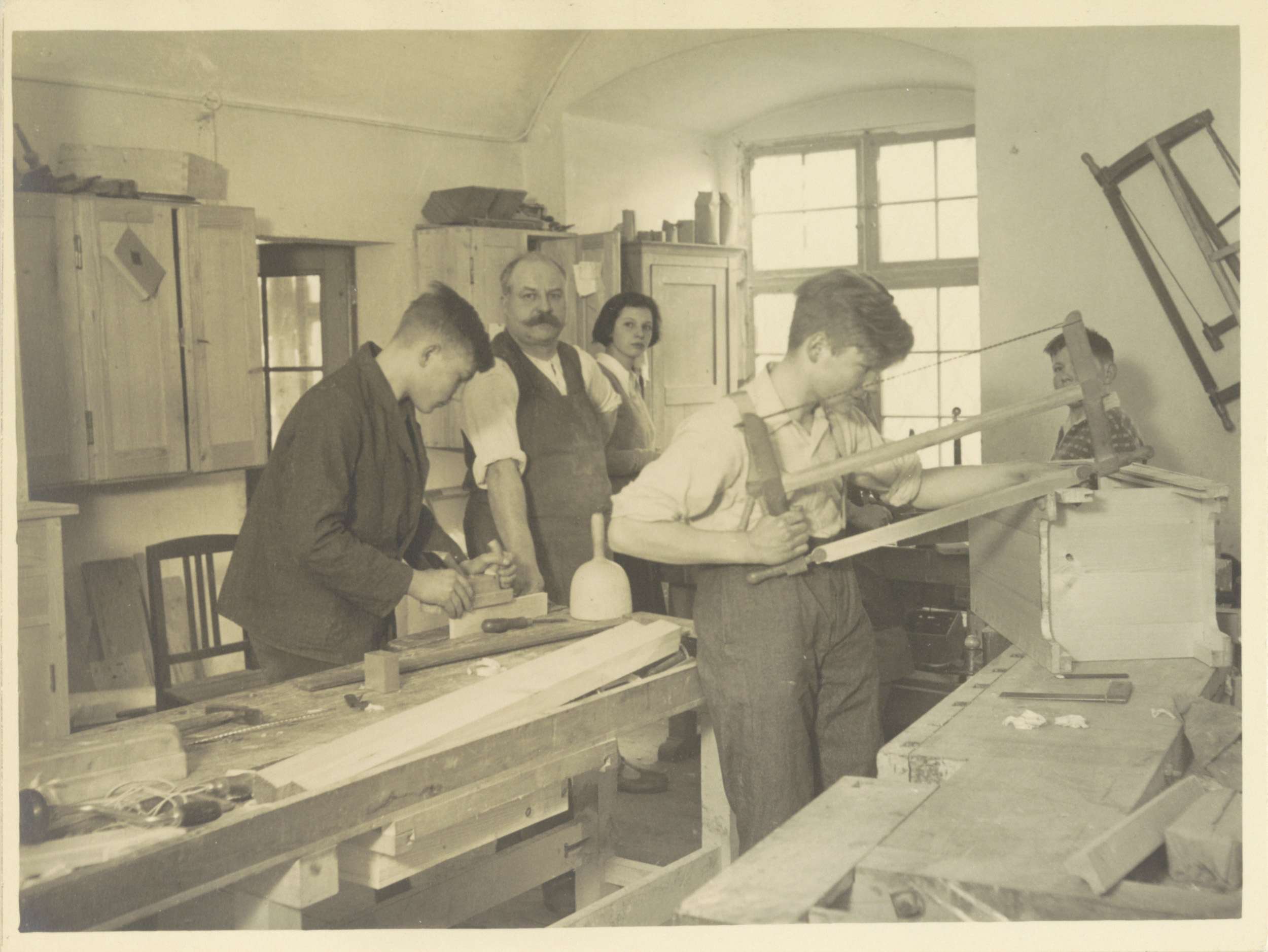 Leerling van Schule Schloss Salem bij een zelfgebouw...