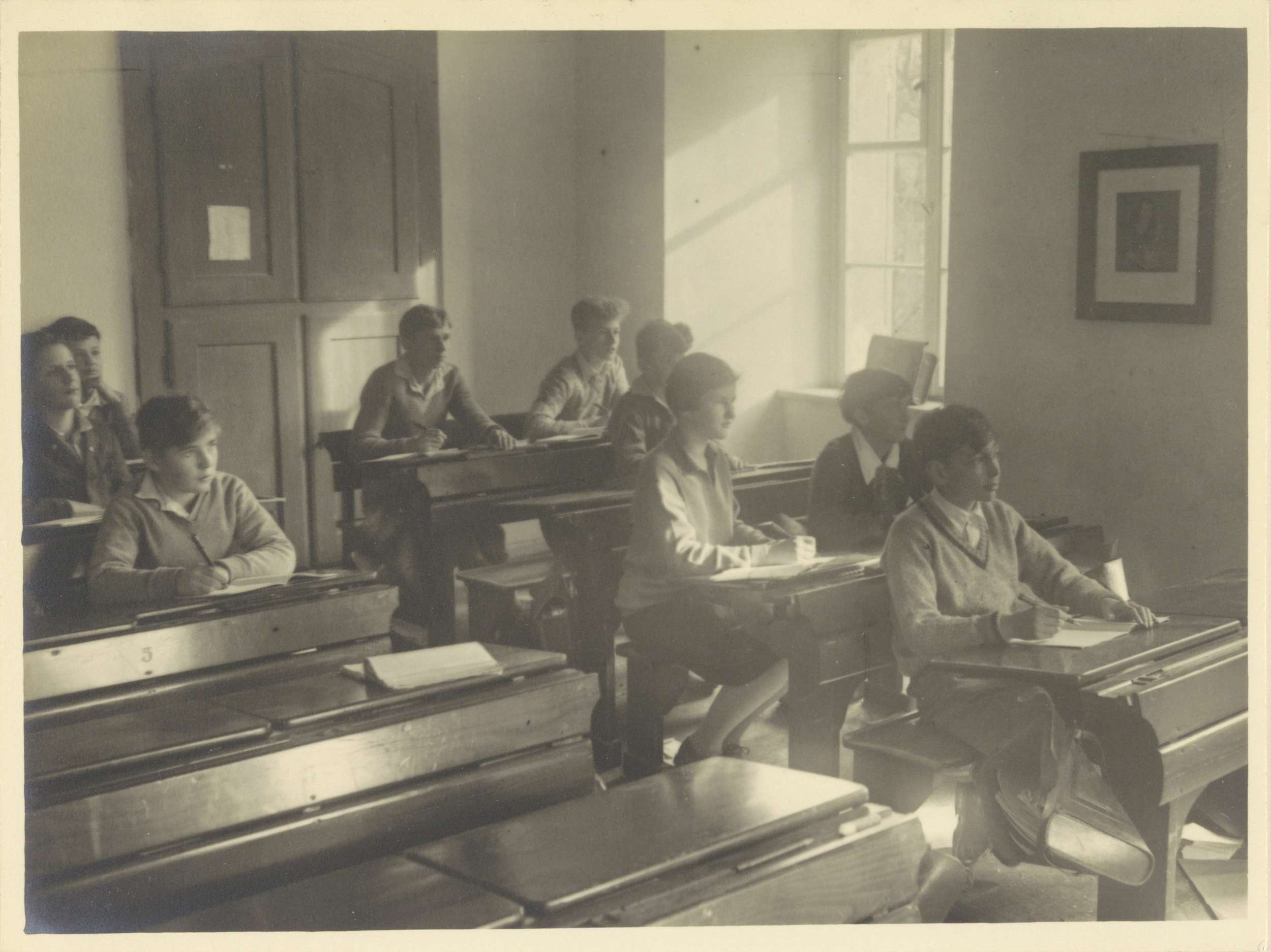 Jonge leerlingen zittend in een klaslokaal in Herman...