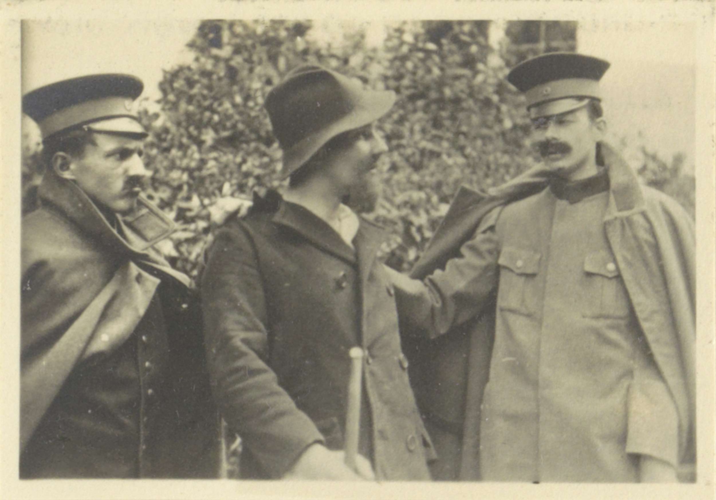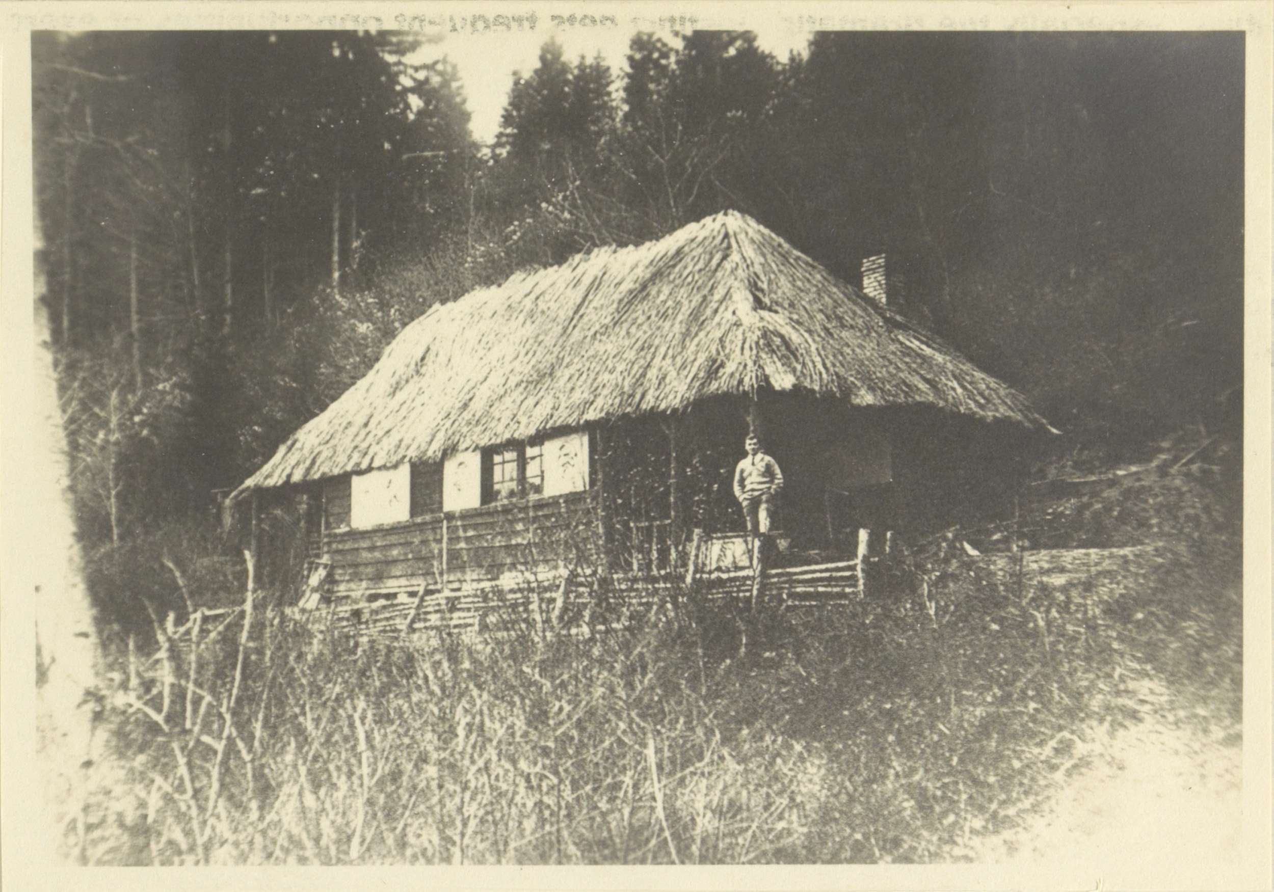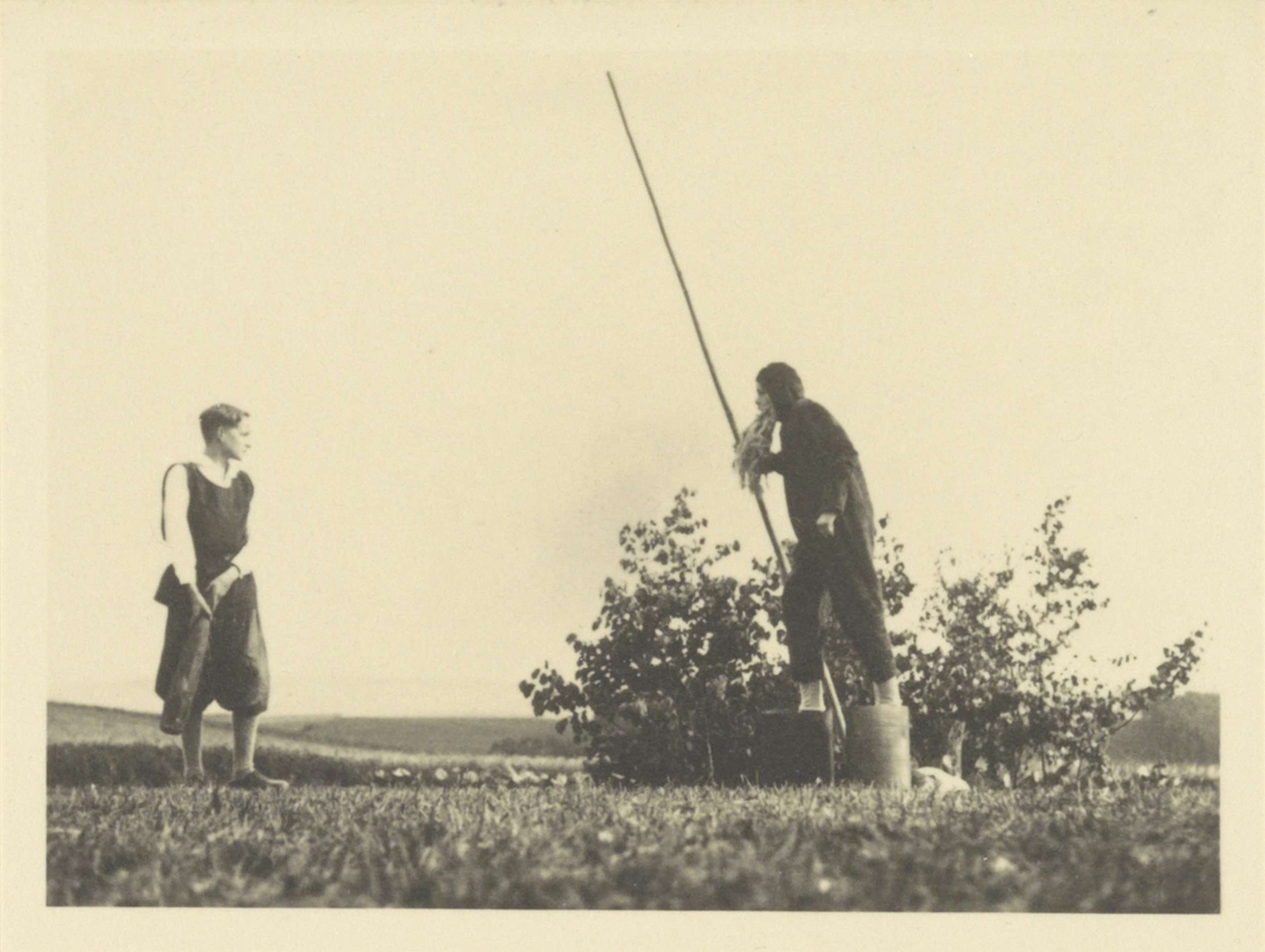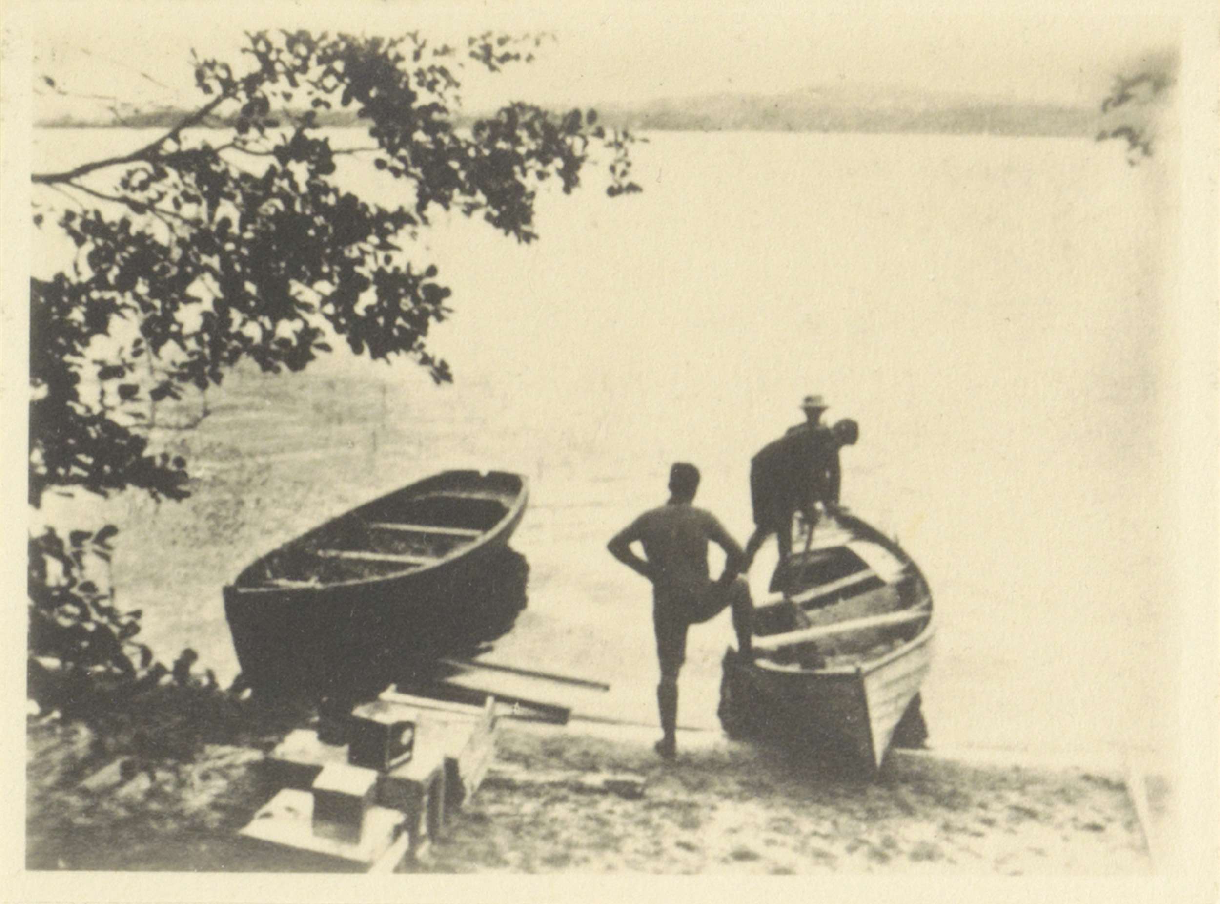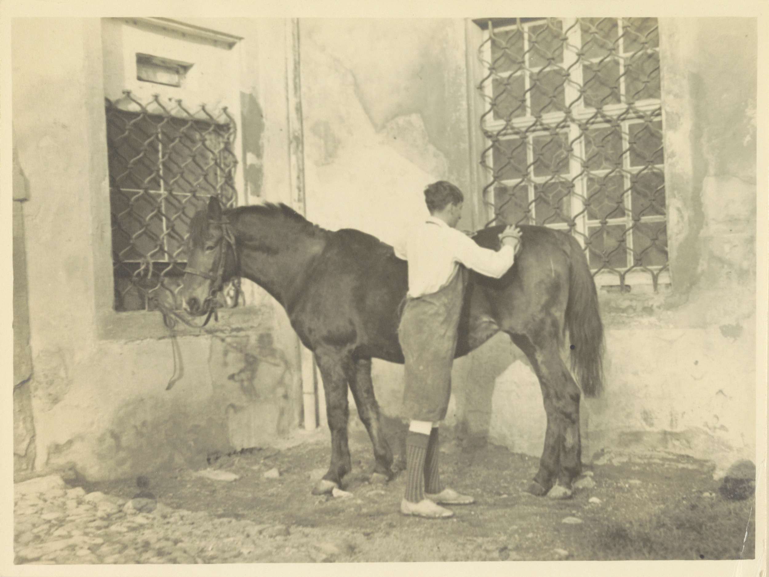Twee mannen met lastdieren bij (vermoedelijk) een ka...