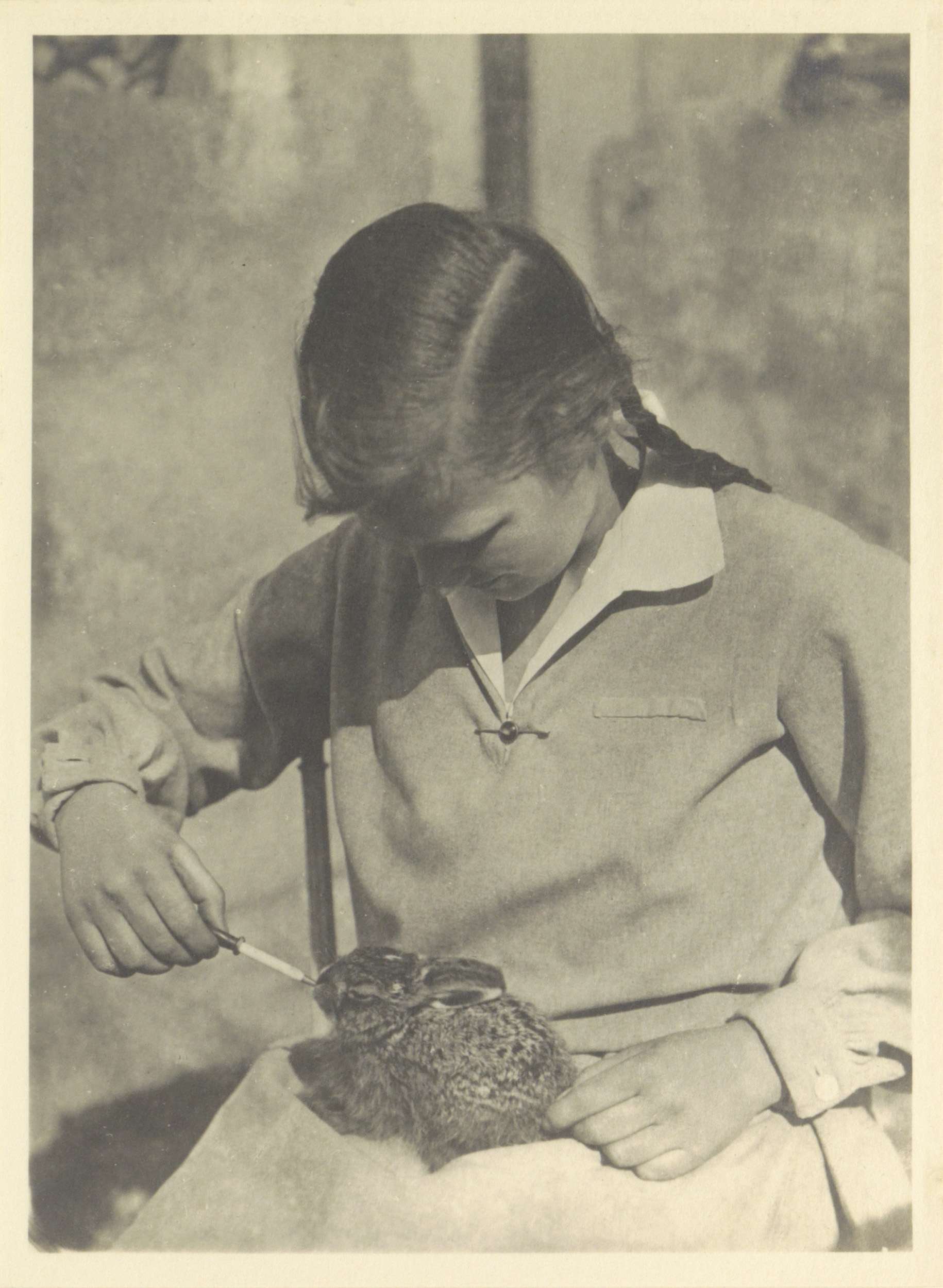 Leerling van Schule Schloss Salem voert jong konijn ...