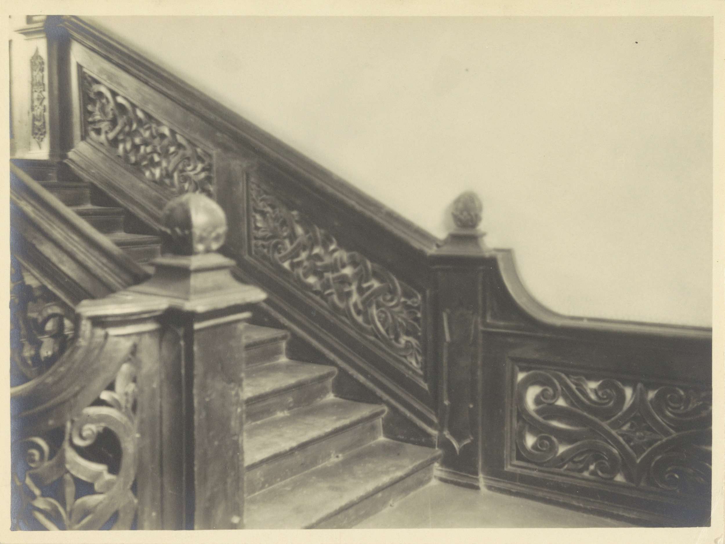 Berwerkte houten trap in Schloss Spetzgart, nevenves...