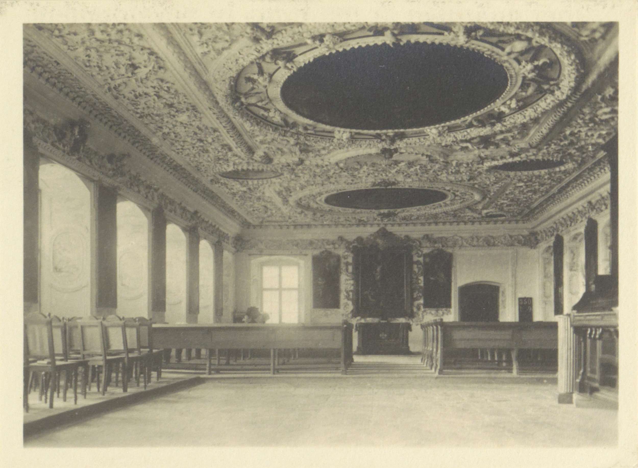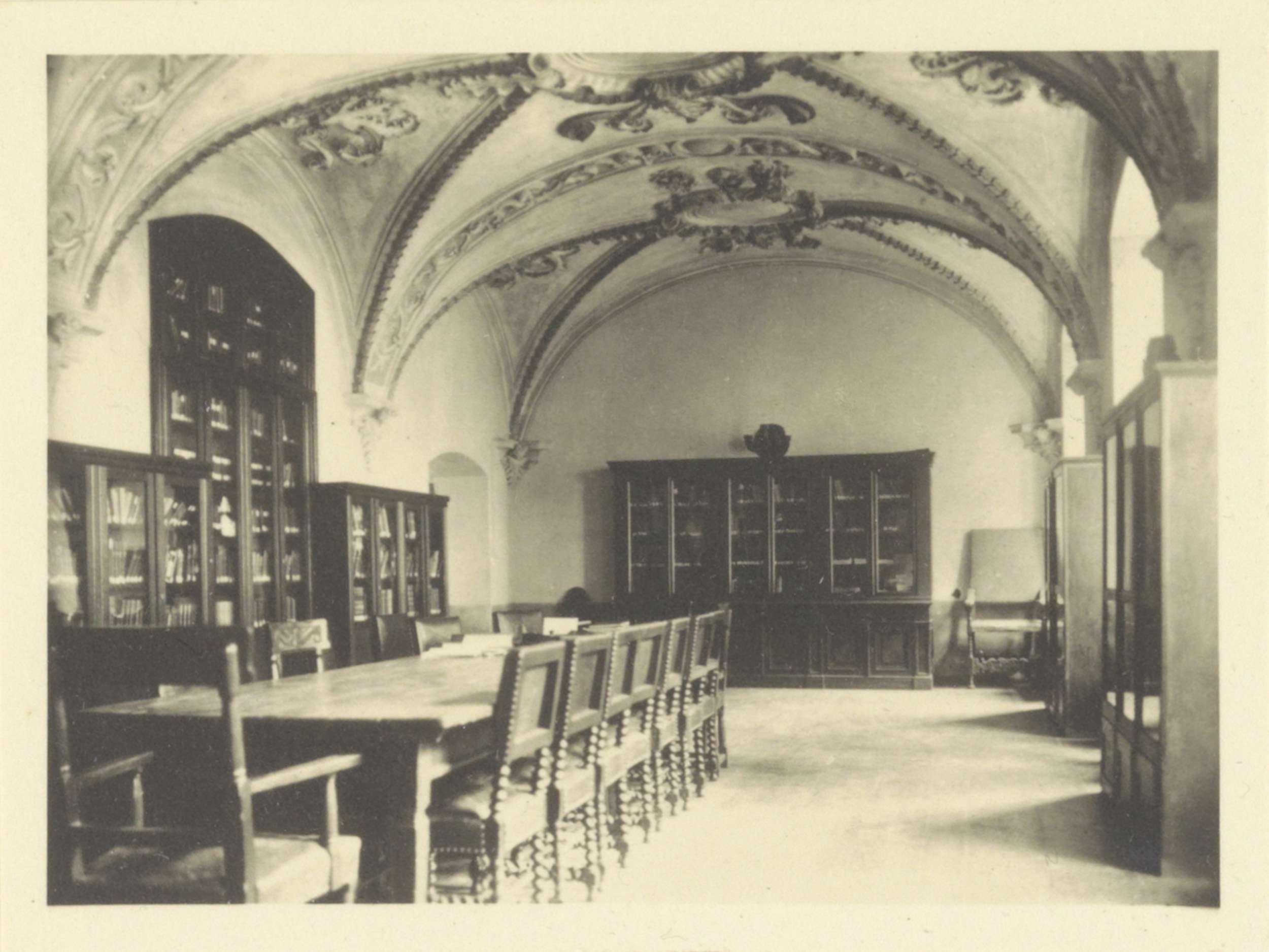 Bibliotheekzaal met geornamenteerd plafond in Schule...