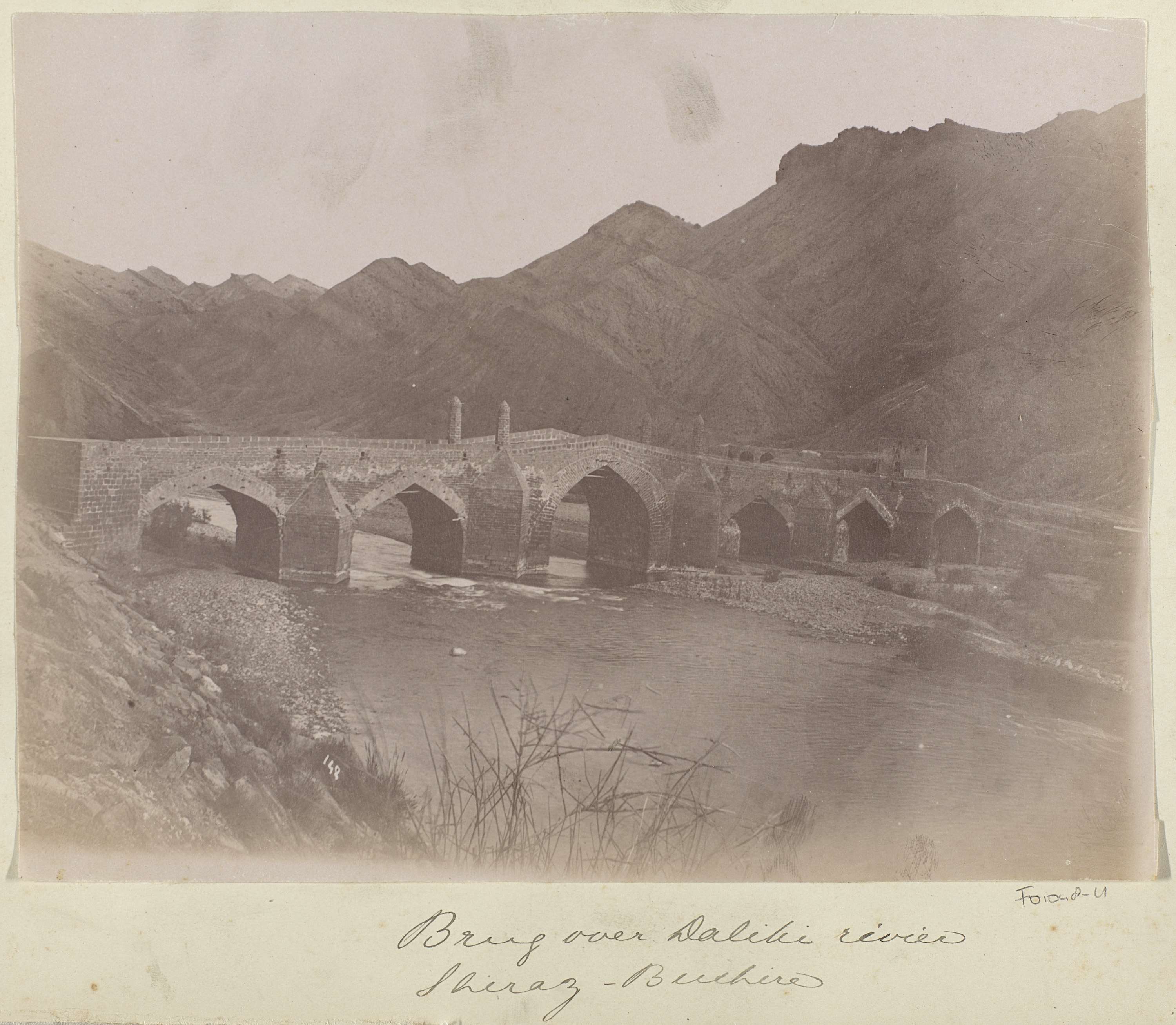 Stenen brug over de rivier de Daliki bij Shiraz-Buchire