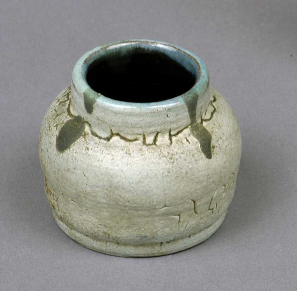 vaas van keramiek, groenig van kleur.
