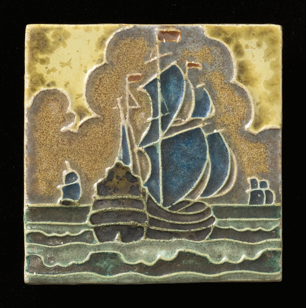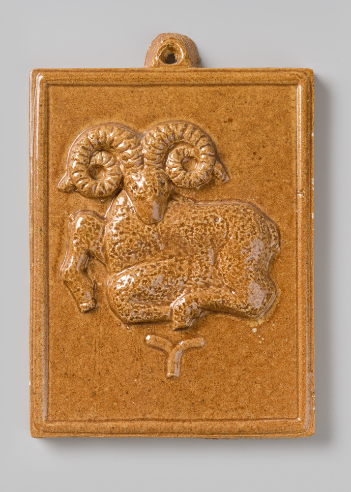 tegel van aardewerk in reliëf, voorstellende: sterre...
