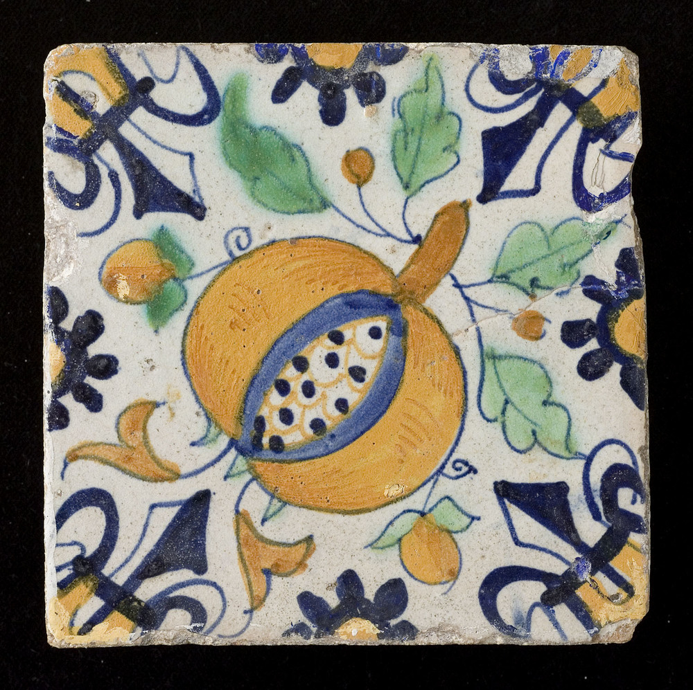 tegel van keramiek met tinglazuur, voorstellende: or...