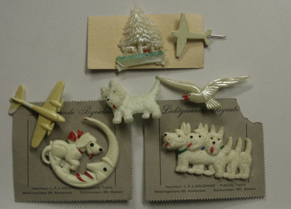 7 lichtgevende speldjes van kunststof uit omstreeks ...