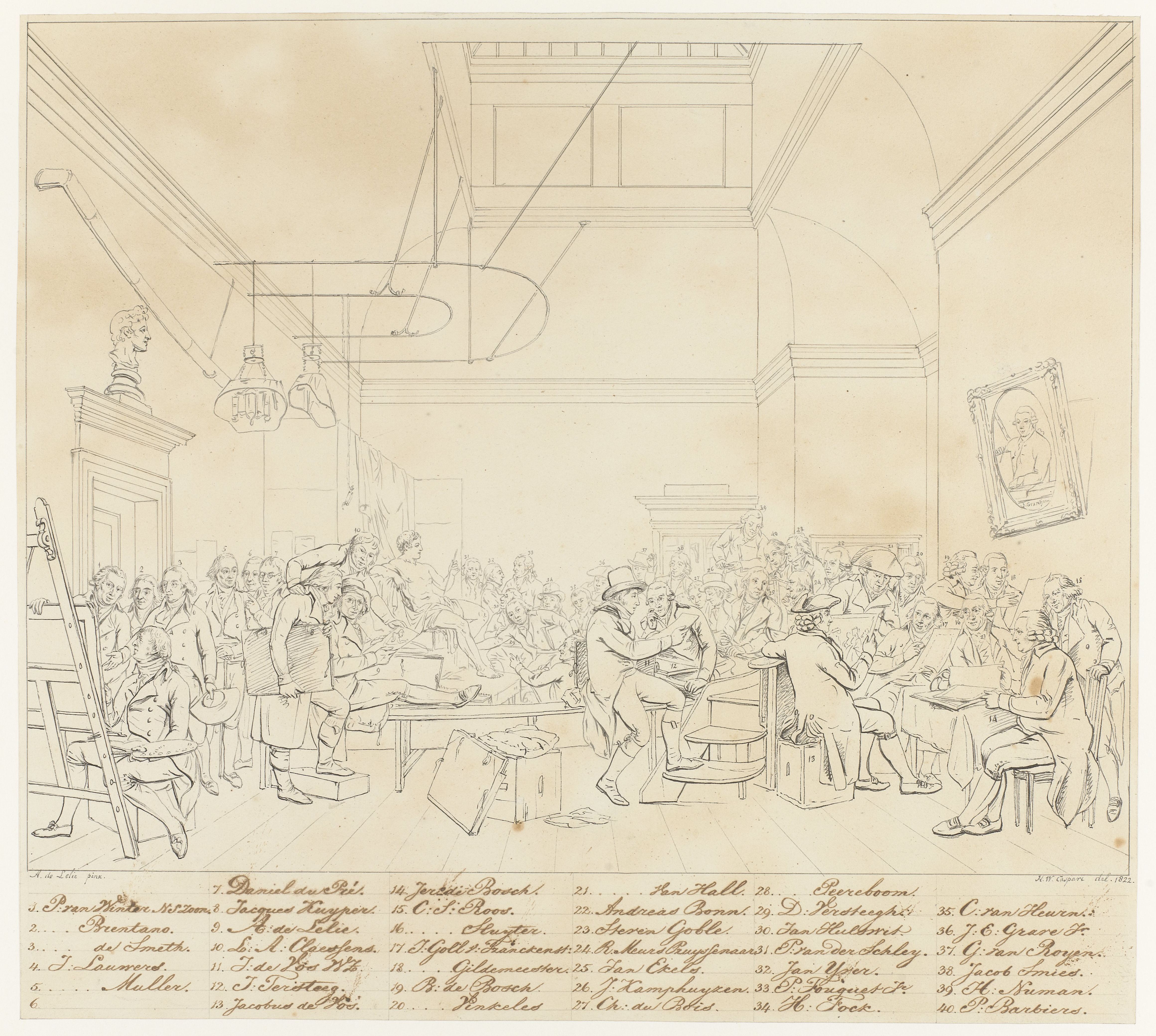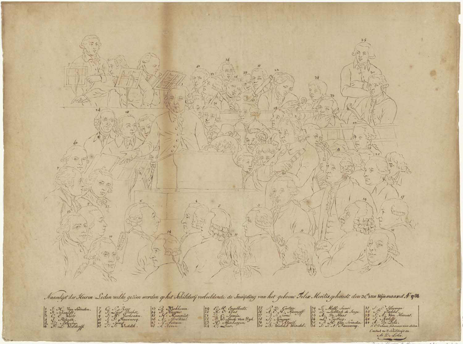 Omtrektekening met identificatie van de portretten o...