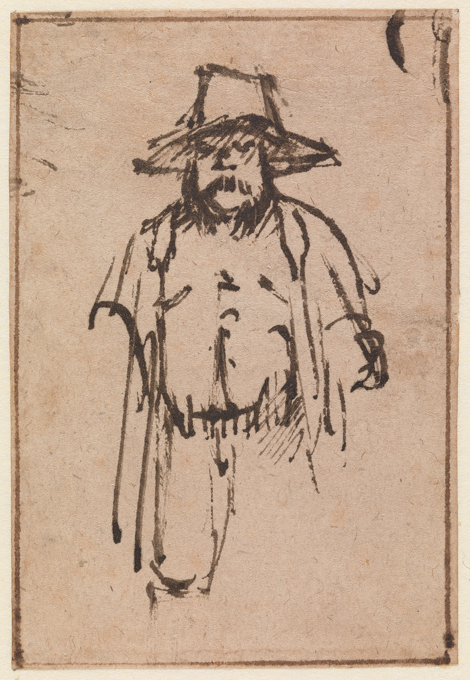 Een staande man met een breedgerande hoed