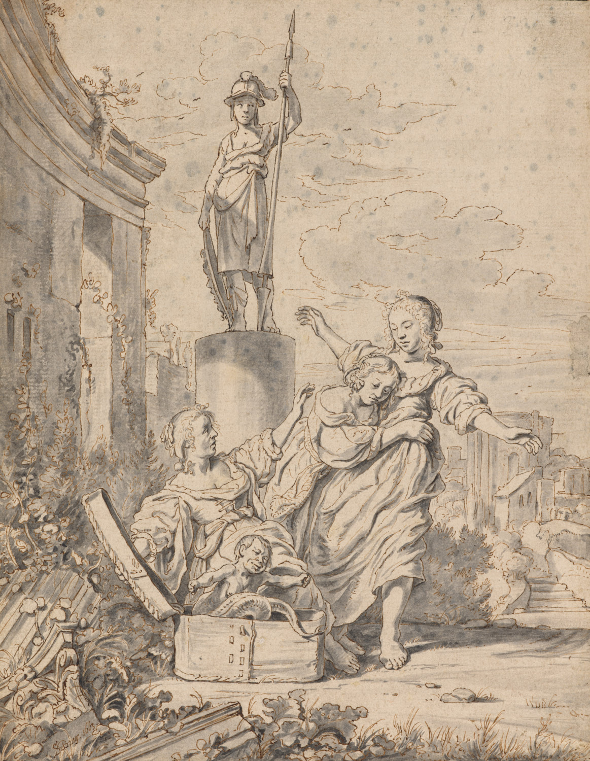 De dochters van Kekrops vinden Erichthonios