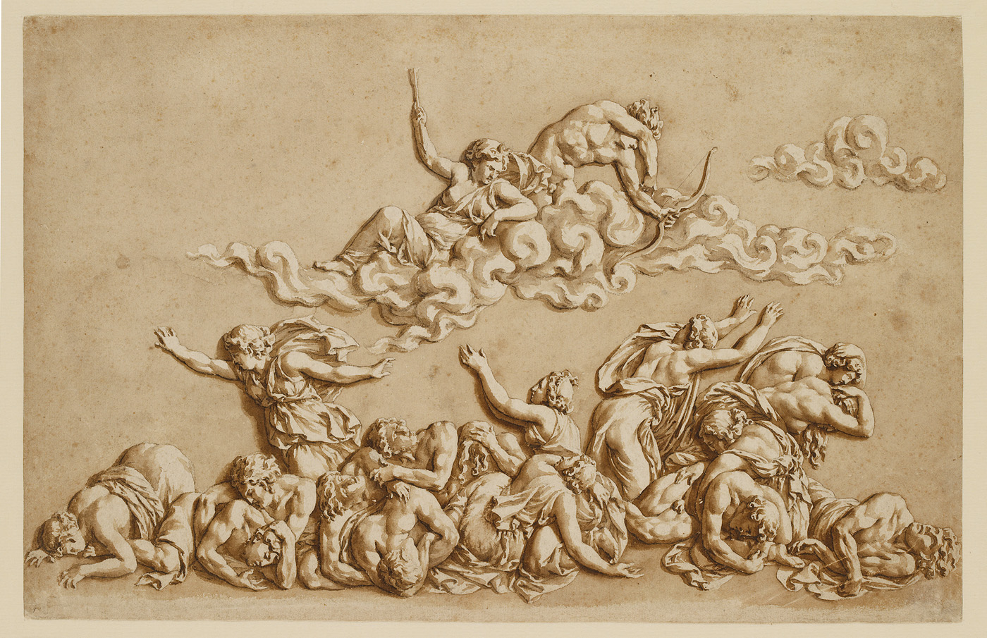Kopie naar een antiek reliëf met de Dood der Niobiden